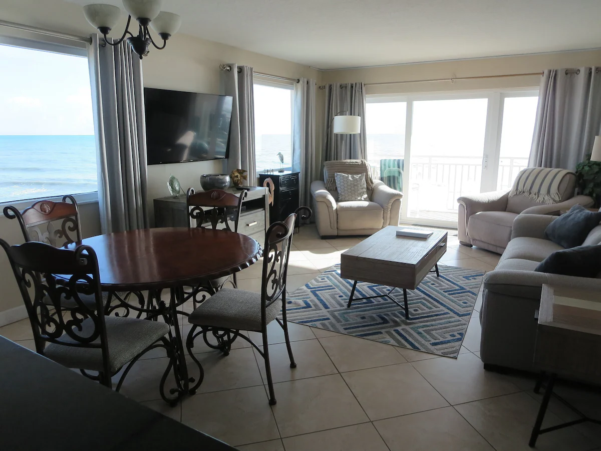 This deluxe third floor, direct oceanfront corner unit is the closest unit to the ocean in the entire building! The large balcony has a 270-degree view of the beaches to the North and South, the ocean and the pool.