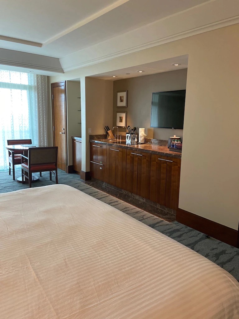 On 11th floor with 1 King Bed and a Queen Sleeper Sofa or 2 Queen Beds - 523 square feet - Just steps away from the white-sand beach and crystal-clear Caribbean. The Reef Studio is spacious, with master bedroom with plush armchair, 1 King Bed and a Queen Sleeper Sofa or 2 Queen Beds, table, 2 chairs and closet, large master bath with twin basins, combined parlor with sleeper sofa, beautifully appointed accommodation with deluxe amenities, kitchen and living areas as well as private balconies. Resort guests can enjoy the gorgeous Bahamian views surrounding The Reef - Views: Harbor - Max Occupancy: 4 adults and 1 child under 4