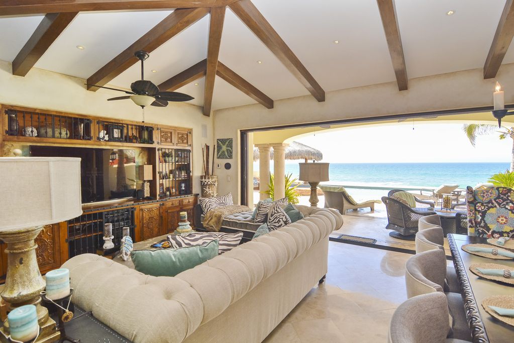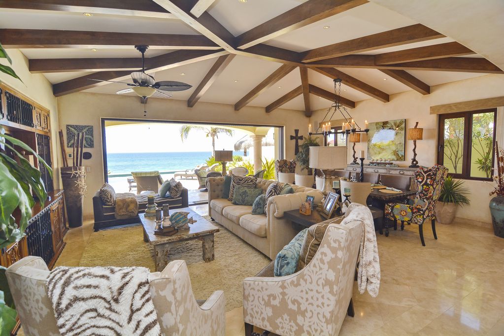 This stunning beachfront home has approximately 3,600 square feet of interior air-conditioned space, It is located within the exclusive guard gated community of El Encanto de la Laguna.