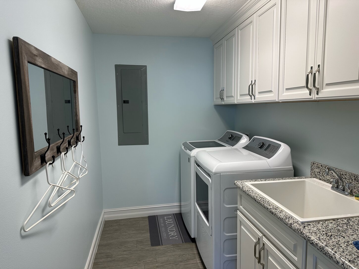 Reserved parking space in the garage with beach umbrellas, chairs, bike, and sand toys for your use.