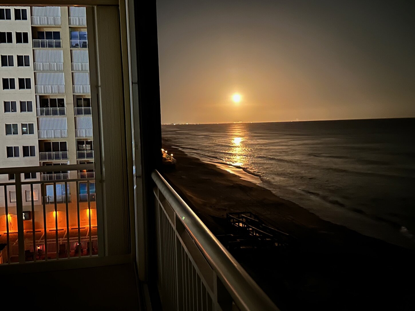 Watch colorful sunrises over the ocean and enjoy watching the surfers, dolphins, pelicans, and other sea life.