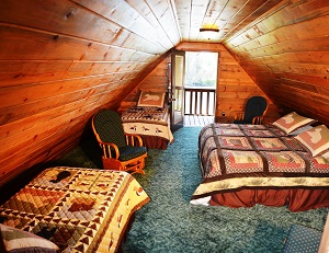 bedrooms and a full bath. This chalet is very close to the hot tub and sauna area.