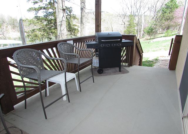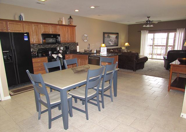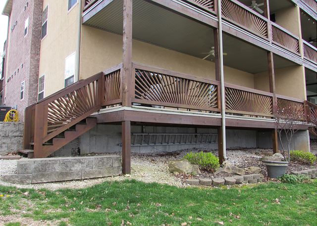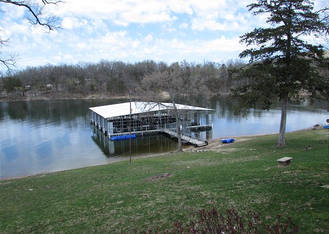 Peak Season requires at least 3 or more nights - arriving or departing on a Saturday. July to mid August is a 7 night minimum. A wonderful lower level 3 BR, 2 bath condo with a walkout from a covered 34'deck directly to the shores and dock on beautiful Table Rock Lake. Perfect for your family and friends, complete with all the comforts of home. Enjoy boating from our boat dock with 11 x 30' slips, fishing, swimming, barbecuing or relaxing in your own Jacuzzi - this is where it's at, just minutes from Branson 76, Silver Dollar City, Branson Landing, Showboat Branson Belle and more.