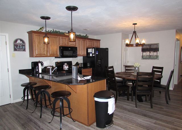 Among the other amenities, this walk-out to the lake, 1400 sq. ft. condo offers you a clean, comfortable stay. While here enjoy the fully furnished kitchen with beautiful granite counter tops and much more. For extra sleeping area there is an air bed or it can adjoin to A-2 or a 6 BR, 4 Bath Condo. Go fishing, bring your own boat or rent a boat, enjoy the pool, horseshoe pit, playground and more.