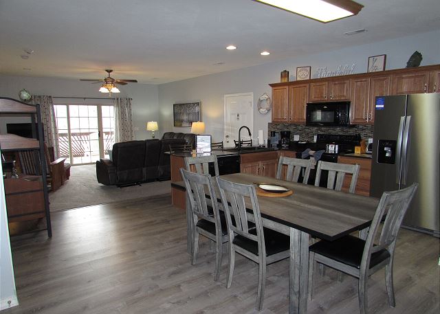 Peak Season requires at least 3 or more nights, arriving or departing on a Saturday. July to mid August requires a 7 night minimum. This walk-in condo from the parking lot is a wonderful lakefront 3 BR, 2 Bath which can combine with condo 2-5 to make a 6 BR, 4 Bath for the large groups. A perfect family vacation to spread out and relax. Enjoy a Jacuzzi bath, a dip in the lake or pool, or bring your own boat or jet skis and enjoy the dock with 11 x 30' slips and Table Rock Lake. All minutes from Branson and all its attractions.