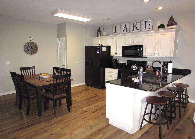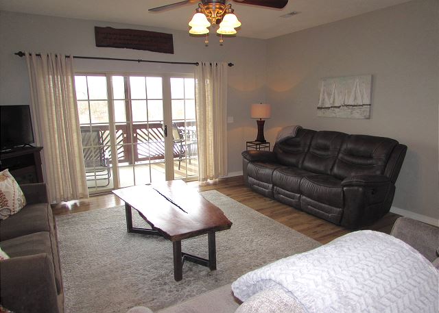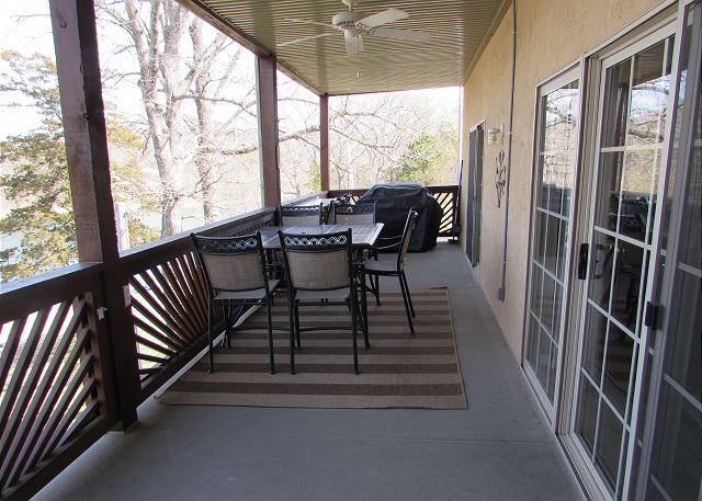 Peak Season requires at least 3 or more nights and we prefer arriving or departing on a Saturday. July to mid-August requires a 7 night minimum. Come to Table Rock Lake and enjoy your vacation in our beautifully decorated, walk-in level, 3 BR, 2 Bath condo. This condo features approx. 1430 sq. ft. for your comfort and vacation with your family or friends. Everyone can enjoy boating, swimming from the dock, relaxing in the Jacuzzi or barbecuing on the large covered 34' deck overlooking Table Rock Lake. Bring your boat and enjoy the 11 x 30' slips. During the cold season, snuggle up by the electric fireplace! Come stay with us, you'll be glad you did!