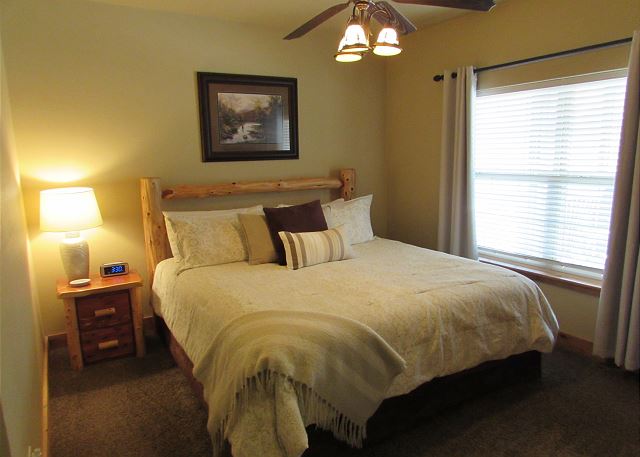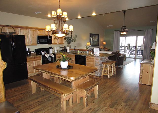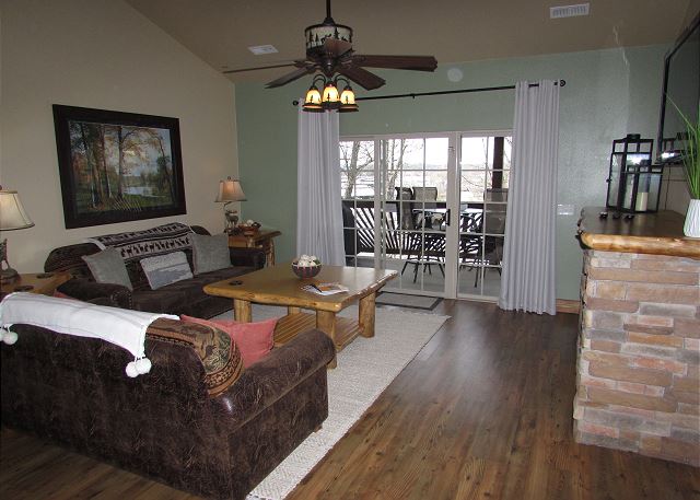 This condo has dock access, so bring your boat and enjoy our 11 x 30' slips, swim or fish off the swim deck. Branson and all its attractions are only a few minutes away and Table Rock Lake just a few steps from the door. You may never want to leave the comfort of this well appointed Lodge Style 3 BR Condo. The LODGE Unit boasts custom handcrafted log furniture, a warm fireplace for cozy nights and a picture perfect view of the lake from the living room, master bedroom and spacious deck.