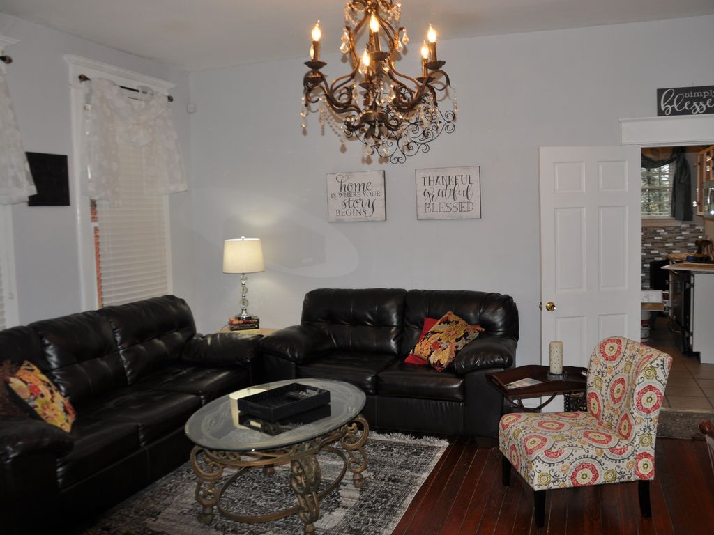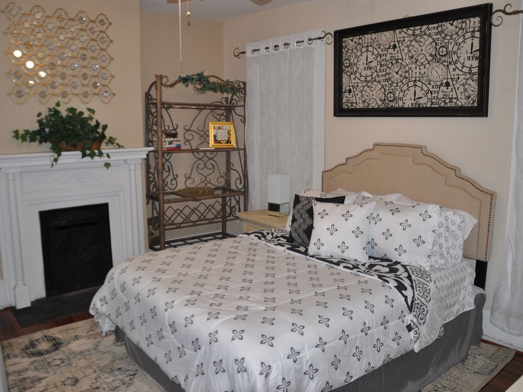 This beautifully appointed, newly renovated, professionally decorated luxury home has wireless Internet, fully furnished kitchen, linens, and was built in 1900 and still has much of the charm of the era including the original staircase, woodwork and fireplaces. It has cable TV's in each bedroom as well as the big-screen TV in the living room, an eat-in kitchen nook that seats 6 as well as a formal dining room that seats an additional 6 guests. Upstairs are 3 large bedrooms including a luxury king master suite, 2 queens in the second bedroom, and a queen in the third bedroom. There is a second bathroom upstairs also. Downstairs there is a small bedroom off the side entrance that has a twin daybed and a full bathroom off it. The living room has a leather sofa that makes into queen bed. It has a DVD library, books and family games for your personal use. All the comforts of a 1900 sq ft home at the price of the average downtown hotel. The home also has its own private driveway for parking.