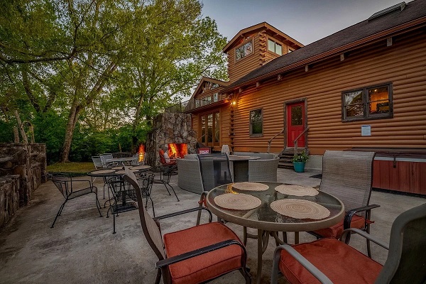 The back patio has the hot tub and leads to the 36 ft inground pool that is exclusively for your use. The pool is the place to be for all ages either wearing out the young ones or relaxing for the older ones. Also in the back is the fire pit and outdoor fireplace which provide endless hours of memories while relaxing and roasting marshmallows.