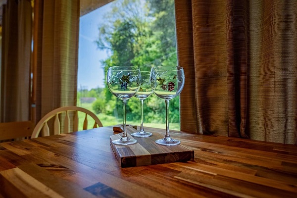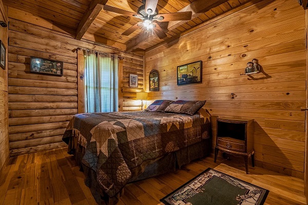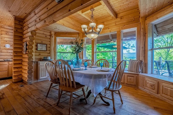 The lodge has over 2,500 sq. ft. of decks and porches so no matter what time of day it is you can find some shade or sun to relax in a rocker or chair. The covered front porch is great if it's raining to listen to the rain on the metal roof or to watch the sun set over Lookout Mountain. The back screened in porch is awesome to enjoy birdwatching or listening to the sounds of nature. The enclosed porch has the foosball table and sauna and outdoor game equipment and the 3 balcony decks are great for a morning cup of coffee to start your day. The large side deck has incredible views year round as you can see to the end of the cove.