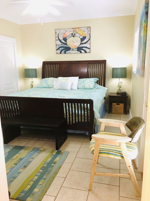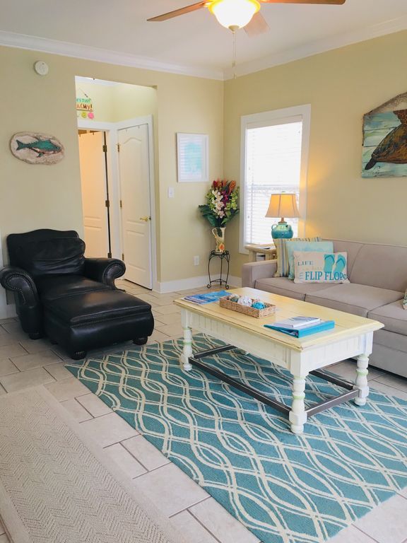 Our one bedroom is beautifully decorated with a screened in porch perfect for a relaxing, Hang Loose vacation. The Purple Parrot is a 114 unit Caribbean-style resort with tropical plants & palm trees. The huge 150,000 gallon outdoor pool is only footsteps from our condo. Enjoy live music at the Tiki Bar (seasonal) or sample some of the local restaurants for your dining & entertainment.