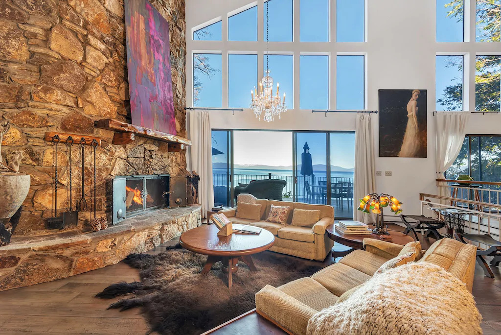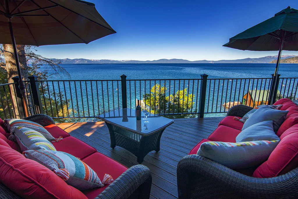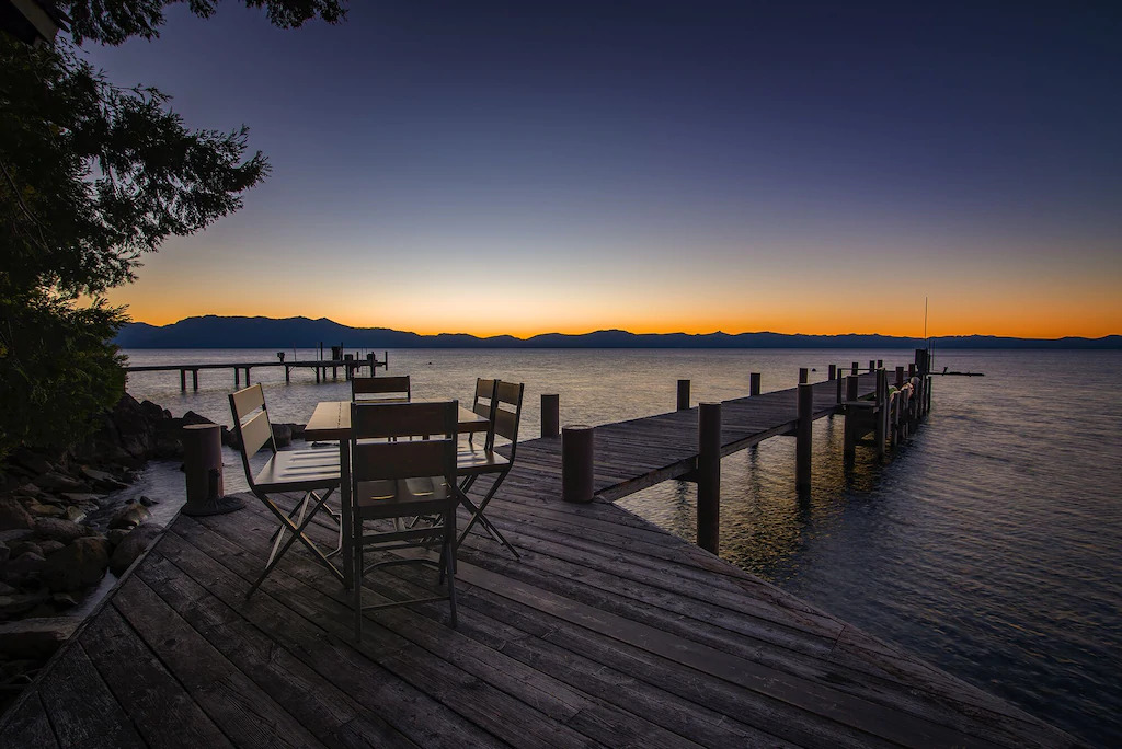 VIlla de Lago, The Lake House, is located in a secluded enclave north of historic Cave Rock Nevada. Nestled in pines that sweep down through the riparian shrubbery from the home to the properties private pier and buoy. Whether by day or night the lighted staircase will carry you to the magic of the bouldered shoreline where you can spend your time relaxing to the sound of the waves and Tahoe’s ever changing panorama or take a dip from off the pier and swim in waters as clear and brilliant as our skys.