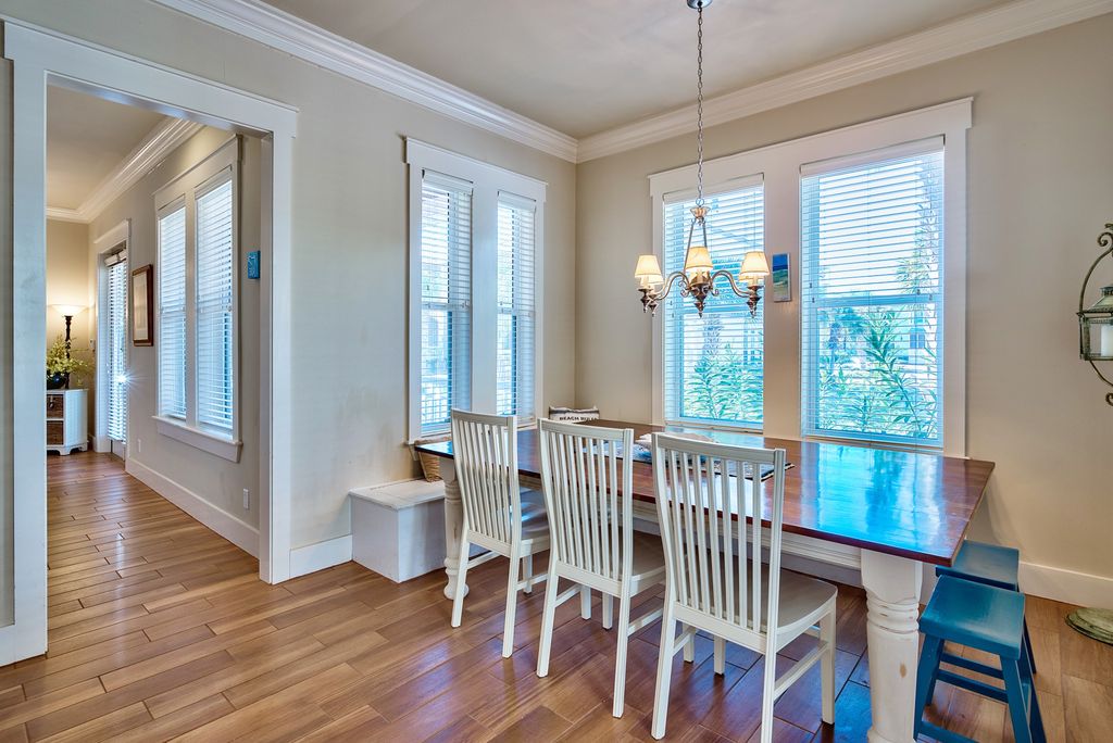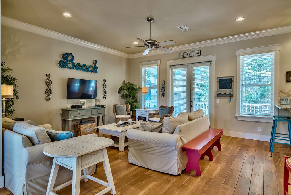 This amazing, beautifully furnished home is located just steps away from the 12,000 square foot lagoon pool at Seacrest Beach and fewer than 500 yards from a deeded beach access. Its layout is conducive to entertaining and features plenty of room for guests. The kitchen, living and dining room areas are open to one another with a beautiful new tile floor that looks like hardwood. The living and dining rooms have convenient access to the covered deck with an outdoor kitchen that features not only a built-in grill, but a double basin sink, refrigerator and stainless steel counter with plenty of cabinets. There is also a new outdoor dining set that seats six.