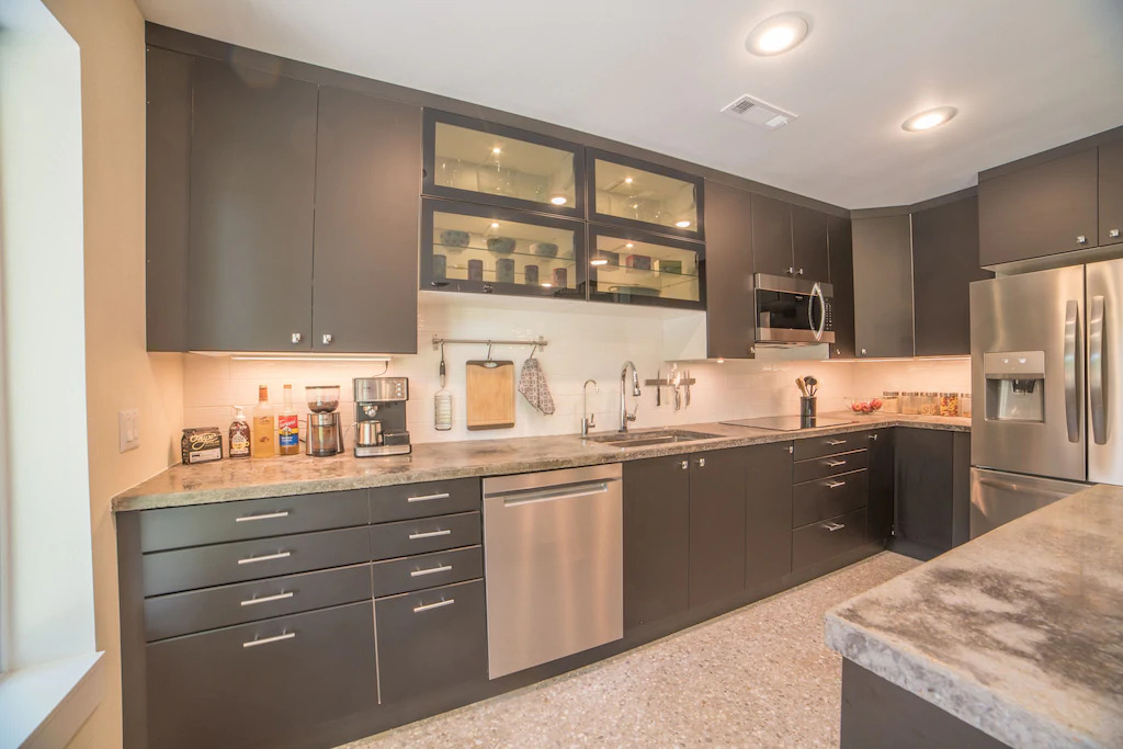 This stunning new home was finished in 2018. It won "Best Curb Appeal" in the Parade of Homes in June 2018. We are a short drive to downtown and uptown (5 minutes in either direction). The home has many unique, exciting features such as smart home capabilities, spiral stairs, and glow in the dark concrete floors (yes, that's right). The kitchen island is roughly the size of a ping pong table and comes complete with a net and paddles if you're feeling competitive. For those who dabble in Netflix we have a 75" smart tv in the living room to watch your favorite shows. **Please note that we do not have traditional cable, but you can stream live shows with your cable provider login from your phone to the TV.