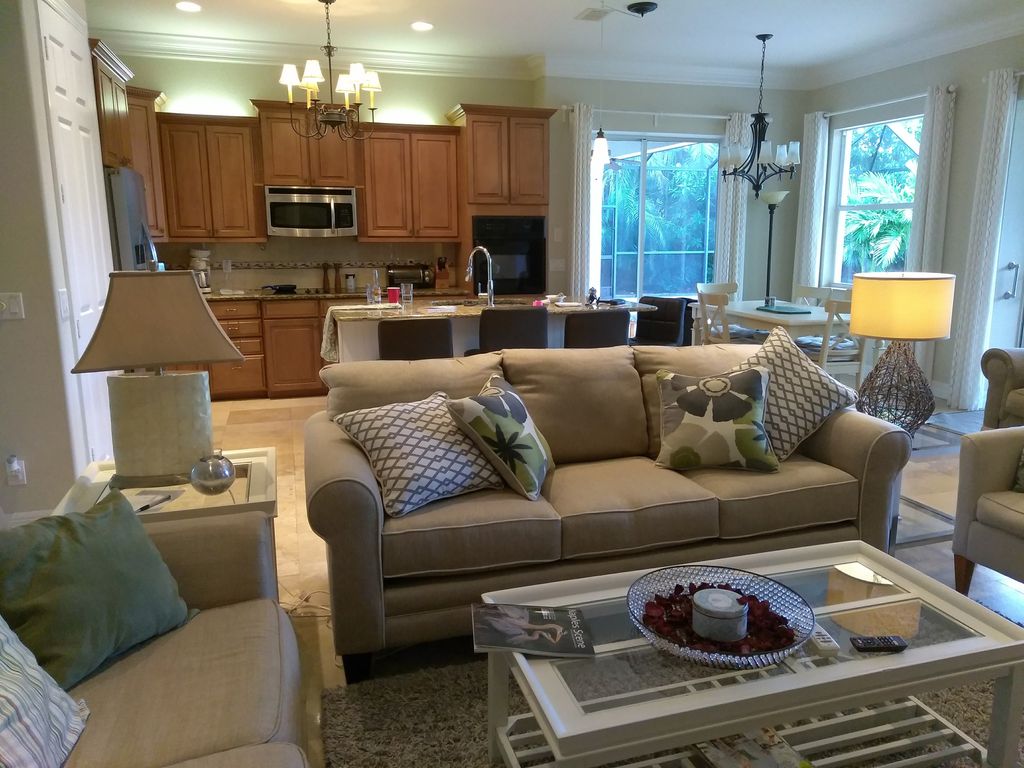 The home is newly furnished and professionally decorated to a very high standard including bamboo and Brazilian marble flooring. The kitchen has all the tools/toys to prepare anything from a quick snack to a Christmas dinner with all the trimmings! Eat on the lani, at the morning room, which looks out onto the pool or the more formal Dinning Room. Dual air conditioning, adjustable interior and lanai ceiling fans, and Venetian blinds at the majority of the windows provide superb cooling. The home has Wifi. The pool and spa can be heated by their own electric heat pump, have full, 'state-of-the-art,' interior and exterior 'Handy Aqualink' controls and romantic underwater lighting. In the living room there is a large screen, High Definition (HD) Dish satellite TV with many channels of video and music and a DVD/CD player with a selection of movies for your enjoyment. There are a number of Florida wildlife and flora reference books and an ongoing library of novels. The two and-a half car garage has powered doors controlled from within the garage.
