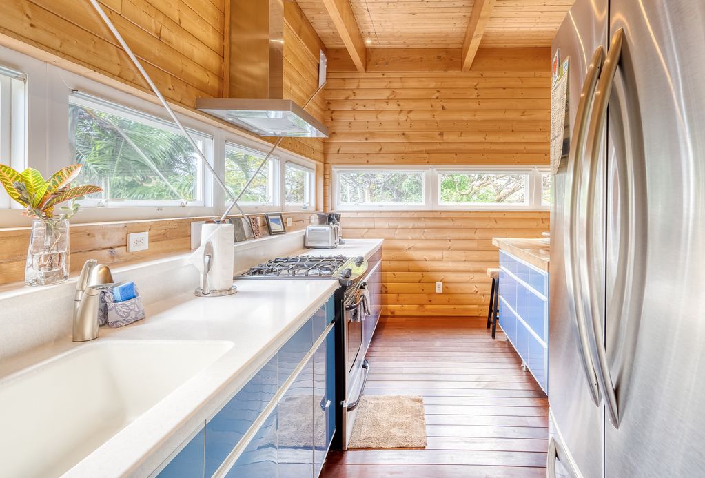 This home sits three-quarters of a mile north of the black sands of Kehena Beach (please note that this beach is clothing-optional), where dolphins are known to come by and frolic with swimmers. You\'ll be 10 miles down the coast from a spectacular surfing beach at Pohoiki, a 20-minute drive from popular restaurants like Paolo\'s, Ning\'s and Kaleo\'s, and 90 minutes by car from Hawaii Volcanoes National Park. The bustling town of Hilo, 32 miles north, is home to many shops, restaurants, and sources of entertainment as well.