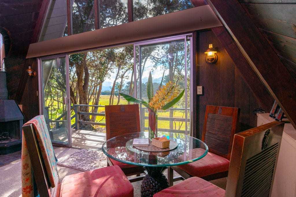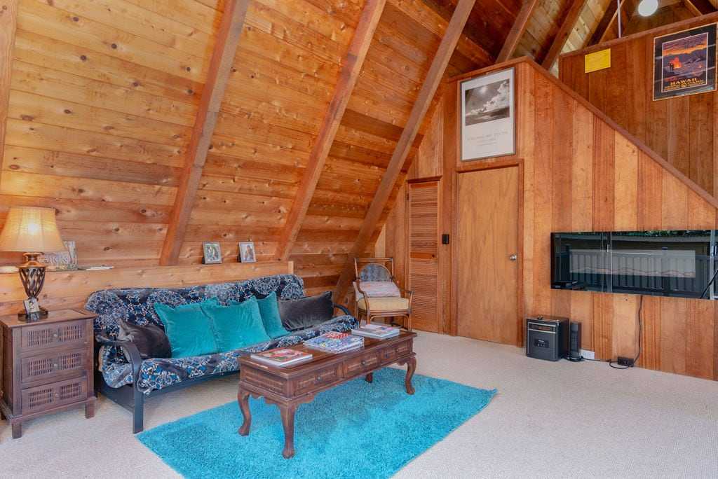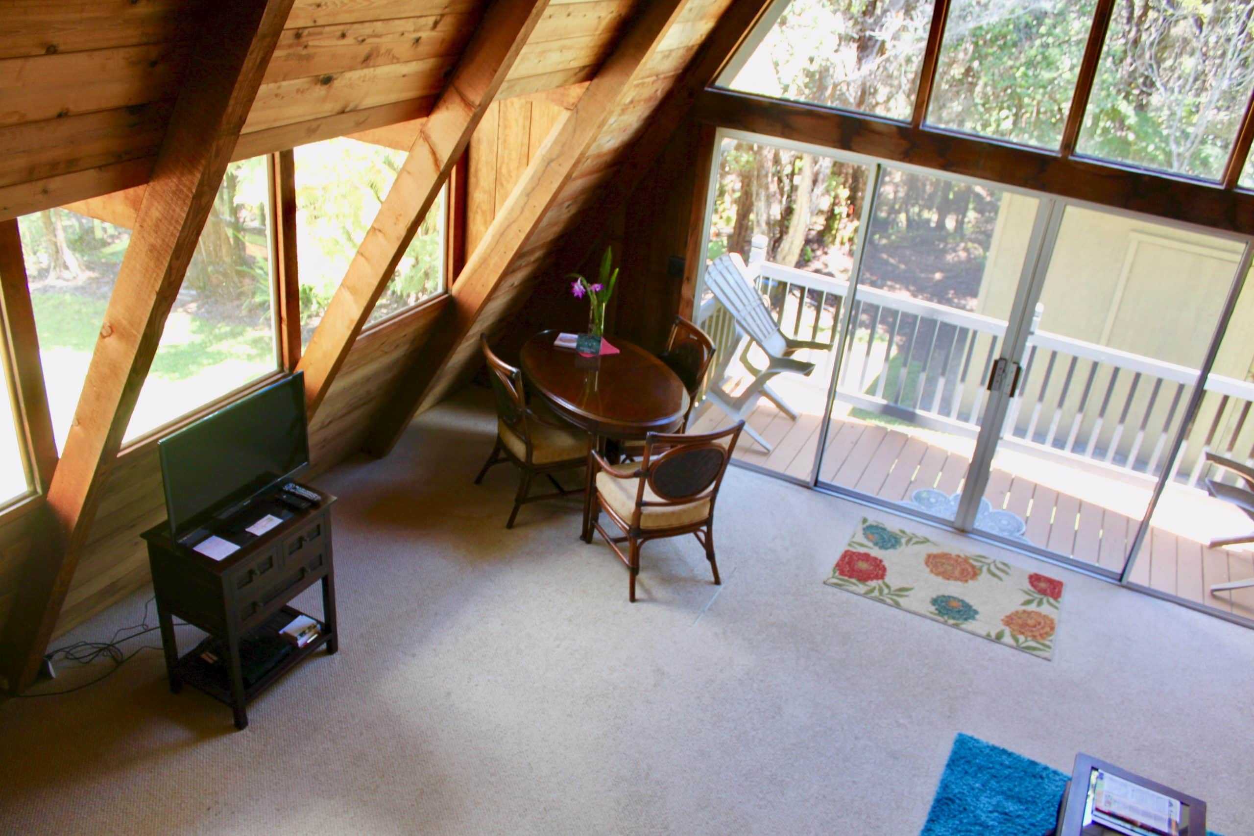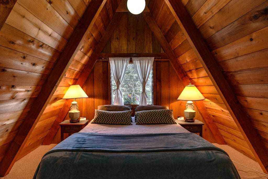 The Volcano cabins are located just outside Hawaii Volcanoes National Park along what used to be the old access road to the Park. These two A-frame cabins are situated on a two acre parcel with ohia trees, redwoods, giant ferns, kahili ginger, and many other interesting plants. There are spectacular views of both Mauna Loa and Mauna Kea from the property. Each cabin is self contained with its own loft bedroom, a bathroom and a kitchen. Both units have their own laundry and private decks. These two cabins named Palila and Nene can be rented separately or together depending on your party size.