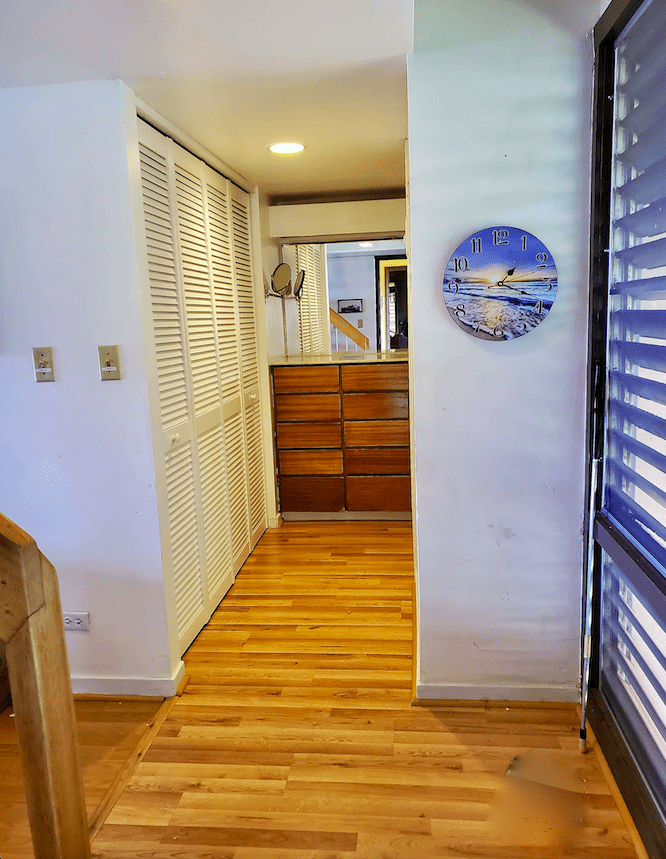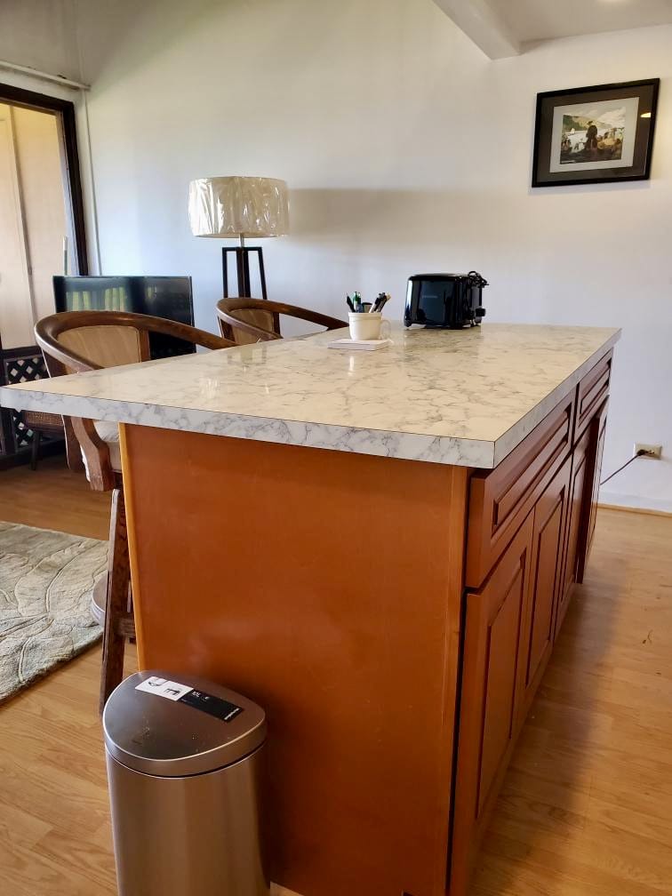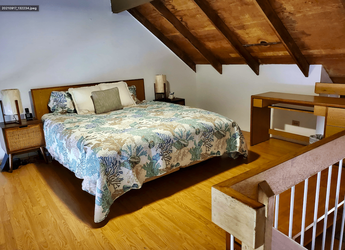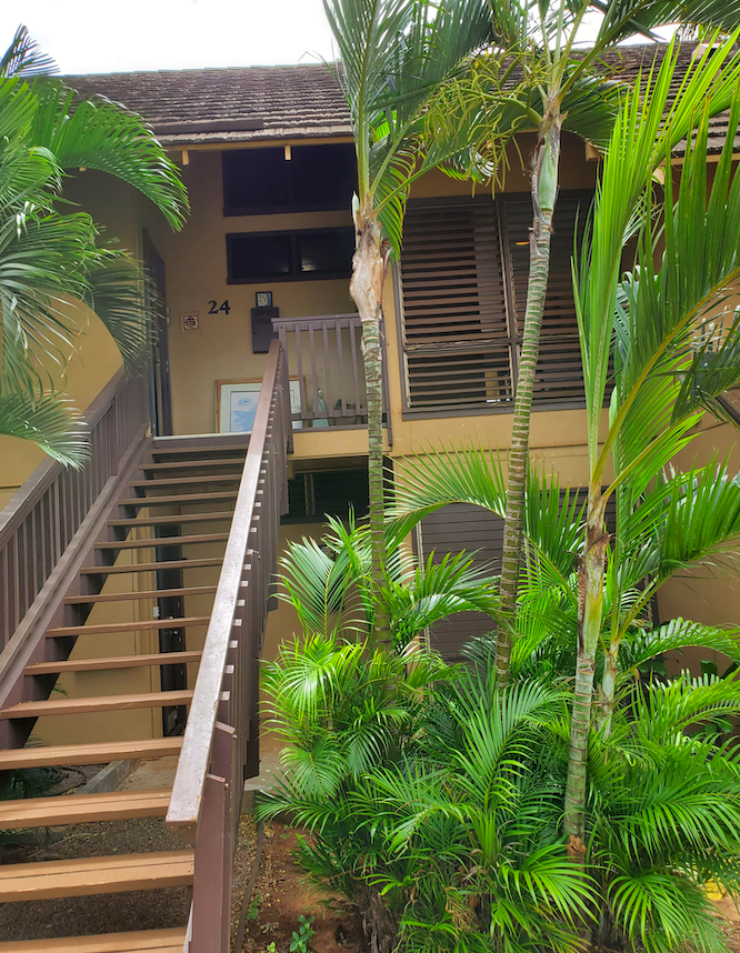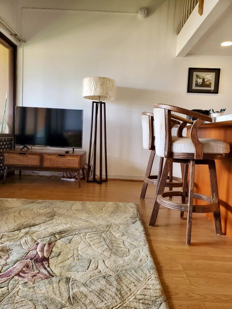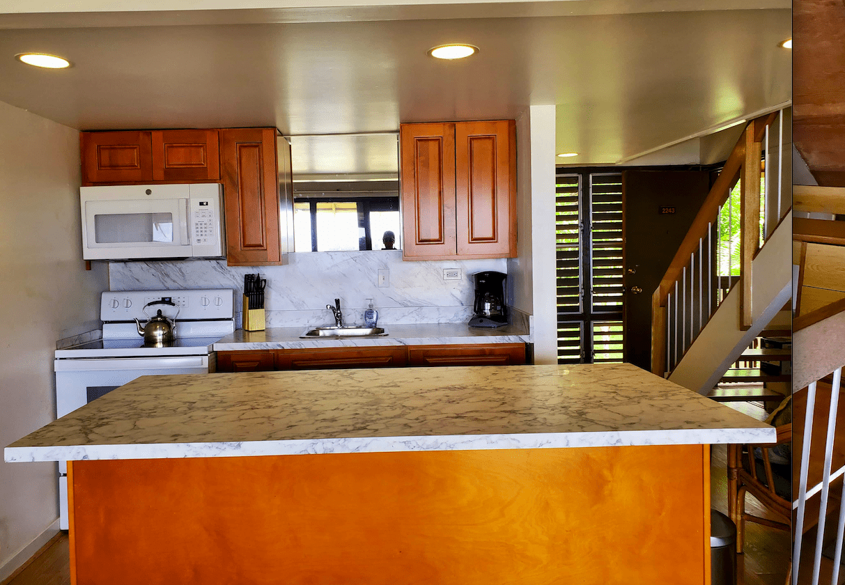 The 2nd story walk up condo comes equipped with a full kitchen and bath, a lanai with ocean, golf course and sunset views, and California King bed in a loft style bedroom. If you need an additional sleeping area, we have a hide-a-bed sofa in the living room. Wifi and a Smart TV are provided for your use as well as a landline telephone. A shared coin operated washer/dryer is available downstairs of the condo.