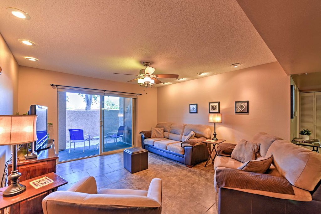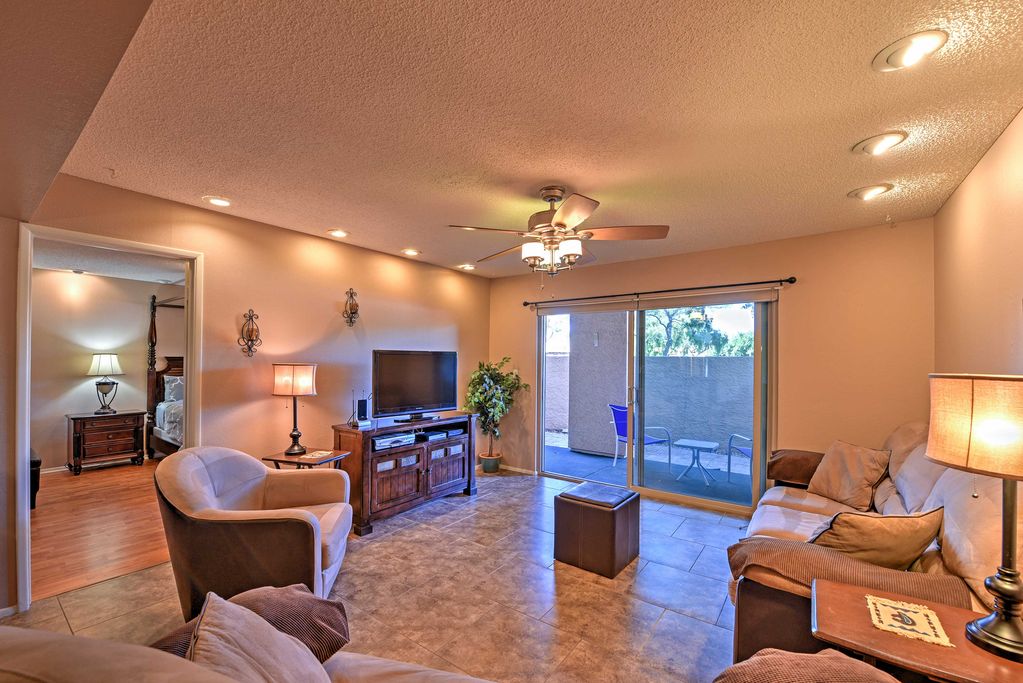 After long days soaking up the sun at Sloan Park spring training, come home to refuel with a tasty snack prepared in the fully equipped kitchen. In your downtime, unwind with the flat screen cable TV in the living room, or sip a cold brew on the private back patio as the sun sets.