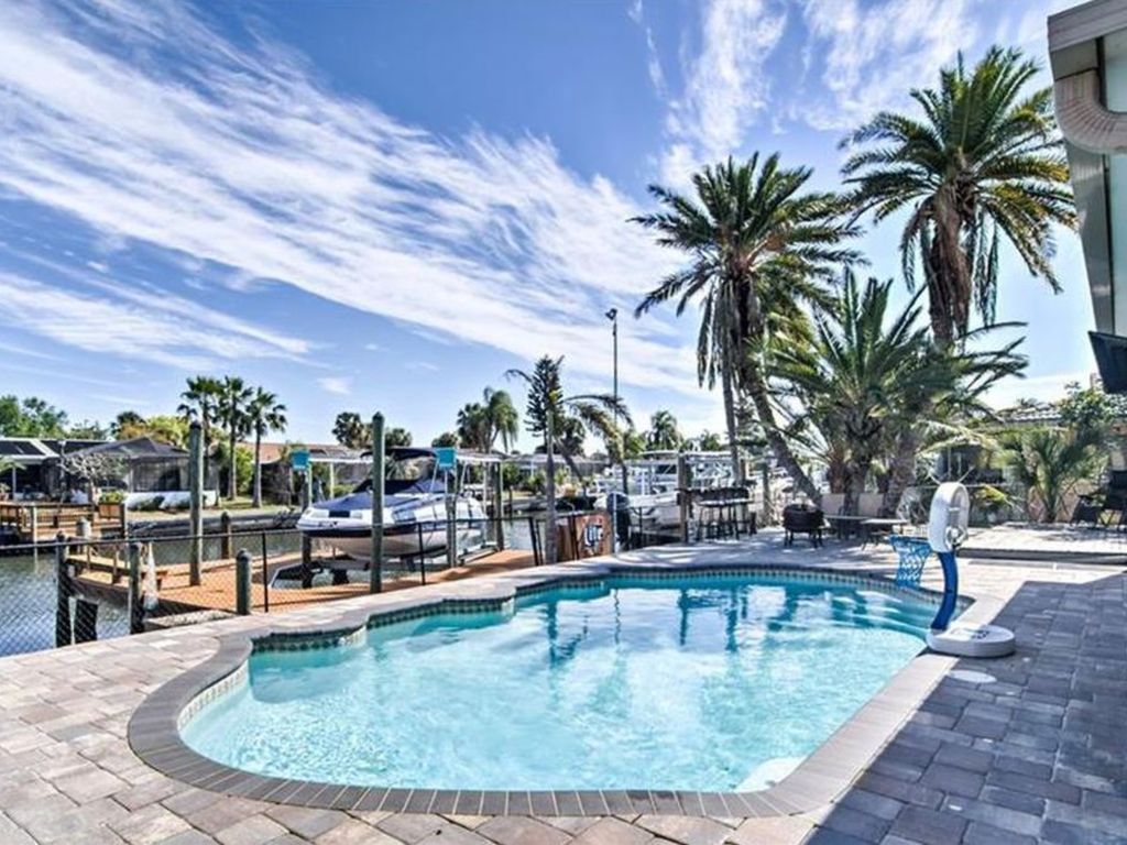 This spacious coastal home is situated on a bridgeless canal to Tampa Bay. It has over 1000 square feet of waterfront deck space- you can fish from the dock or feel free to take one of the kayaks or paddleboard out for an adventure. Come back to your tropical pool deck and grill your favorite fare and play some cornhole! Finish your day with a leisurely bike ride (bikes included) and a beautiful sunset.
