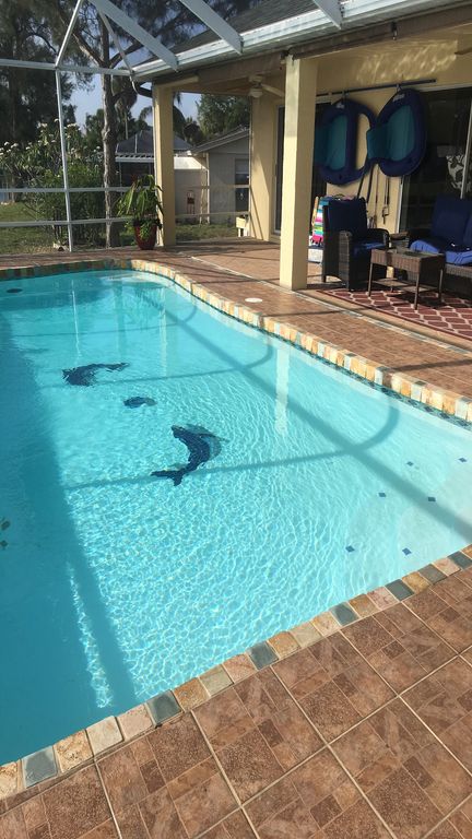 This property can accommodate up to 8 adults and children. Please read below bed sizes for clarification. If you love watching Manatees swim by while having your morning coffee, this is the place for you. This 2500 sf home has 142\' of water frontage with 2 docks that can accommodate both a jet ski and boat. This single story ranch style house has a private master with a king bed in the bedroom with direct access to the pool. There is also a full size tub for two in the master bathroom with jets. The second guest room with queen bed has a shared bathroom with a private access to the pool as well. The third (full bed) and forth (twin bed) guest rooms have a beach feel and share the bathroom. Some of the amenities included are internet, cable, fishing from the back dock, 2 kayaks (one single and one double), all linens, kitchen is fully functional if you like to cook while on vacation too. Golfing within 5 miles and a great marina/bar/restaurant within 2 miles from the house. This is a non smoking home.