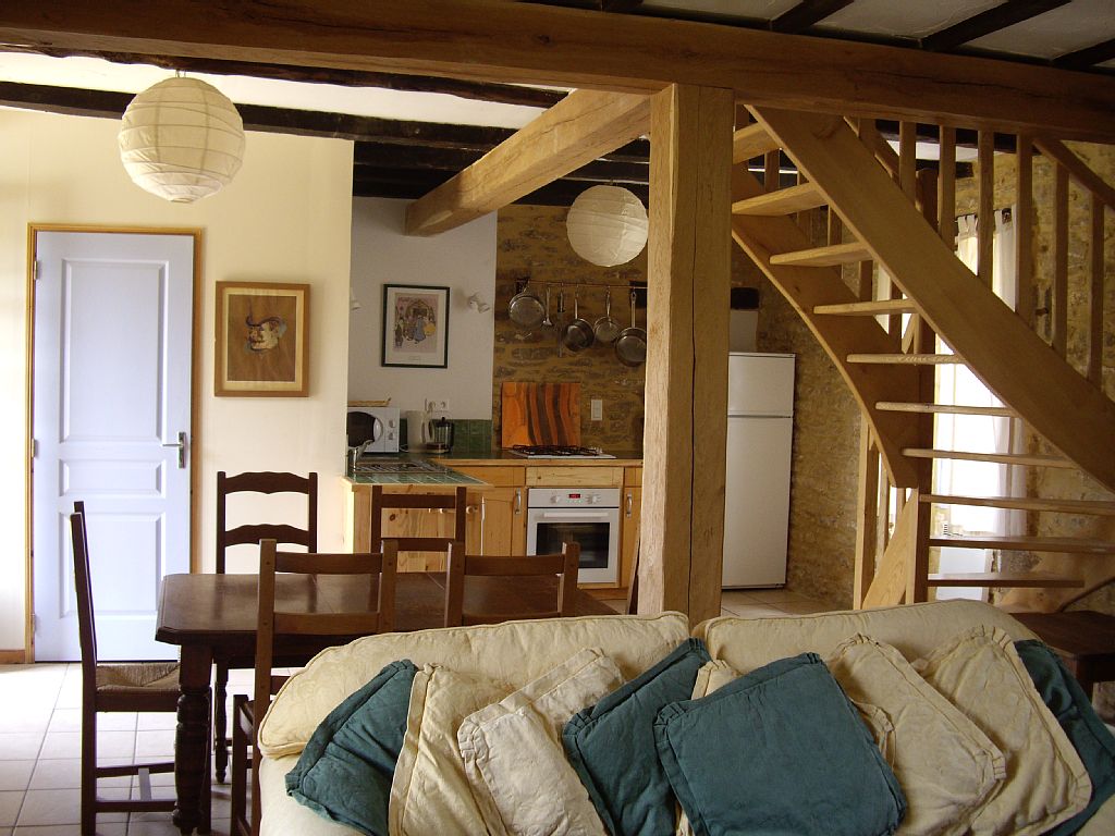 La Borie, a charming little cottage comfortable for two people. The ground floor, the entrance opens on a beautiful clear and warm space, living room and kitchen in its extension. You can discover a library, games, a wood stove, a TV and a stereo mini-chain. The kitchen is well equipped with a fridge (with freezer compartment), stove with oven, microwave, coffee maker, dishwasher and washing machine. Upstairs, a large bedroom with a double bed is illuminated by a large French window overlooking the garden. Shower with sink and toilet complete the upstairs. Ideally some trees shade the private terrace, garden furniture at your disposal as well as a barbecue. You can leisurely enjoy the pool and golf balls.