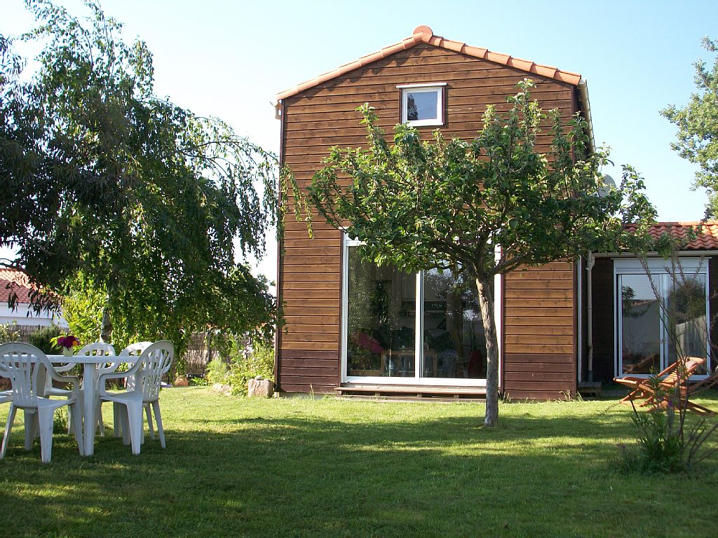 New house for 6 people, close to the beaches and downtown Renting a house in recent wood, with a beautiful garden, trees and fully fenced 500m2. A 1.8 km from the beaches (10min bike), close to the markets, market, shops (500m) and the sports complex with tennis courts. A Br�tignolles-sur-mer, there is also a sailing school, surf schools and kite, and beautiful beaches. The house of 75m2 is very bright thanks to large windows (sun all day) and is located in a very quiet area. It has: - Living room with two sofas (one sofa bed) and flat screen TV with Canal + and DVD player - A fully equipped kitchen with dishwasher, washing machine, microwave, stove with oven, coffee and espresso, toaster, kettle ... - 2 bathrooms with bathtubs - 2 wc - 1 bedroom (12m2) on the ground floor with a double bed and bay window overlooking the garden - 1 large bedroom on the second floor (23m2) with 2 beds of 90cm * 190cm and mattress 2 places - Garden with sun loungers and barbecue - 4 bikes available (because there are many bike paths) and 2 tennis rackets.