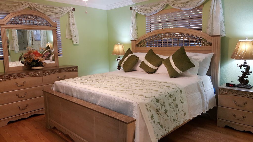 Make yourself at home in this lovely three bedroom, two bathroom, Lauderdale Lakes vacation home, which features individually themed bedrooms guaranteed to make you feel comfortable. The master bedroom features a King sized bed, LCD TV, ceiling fan, a huge bath tub as well as glass door walk in shower, granite vanity with two sinks.