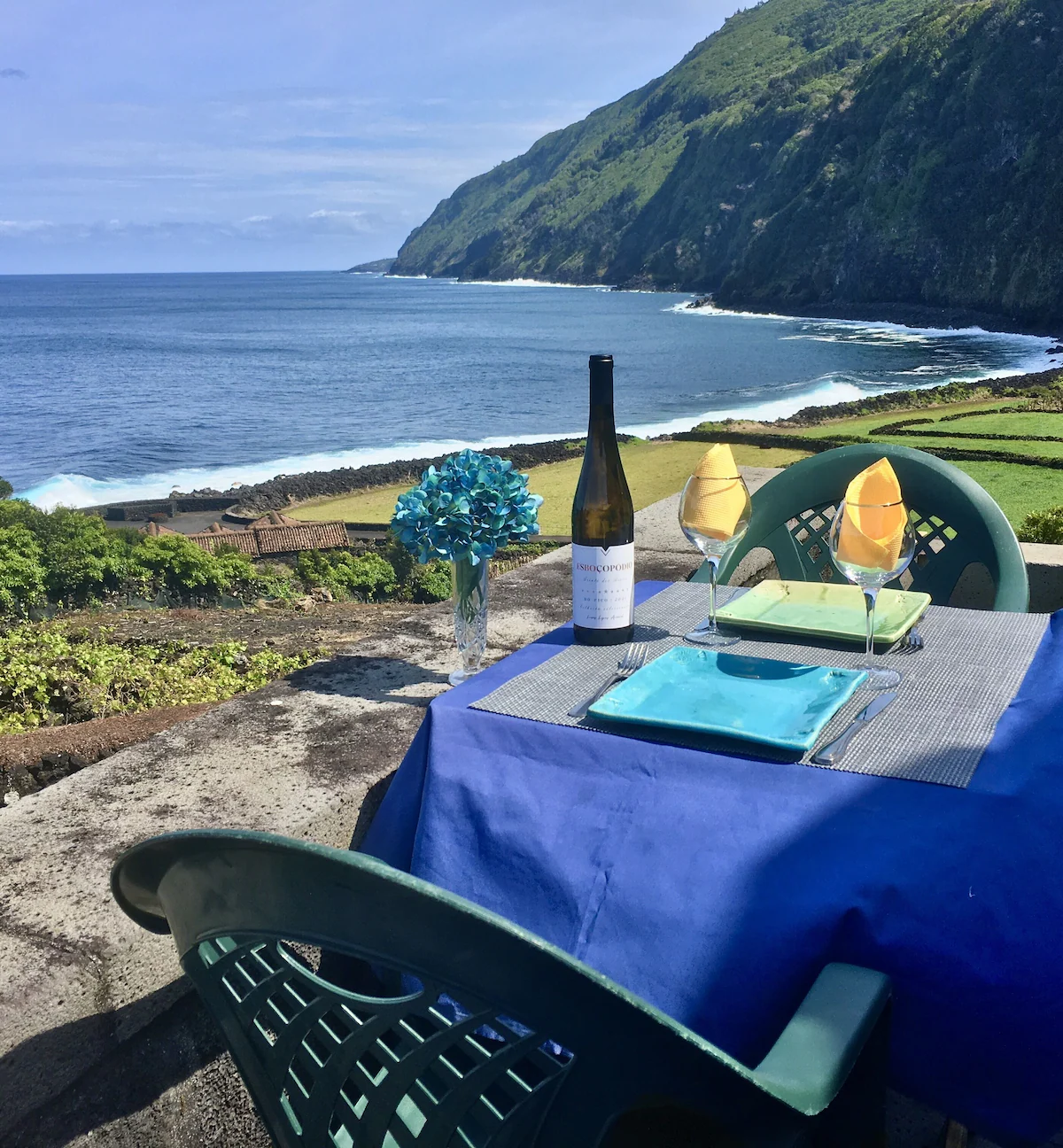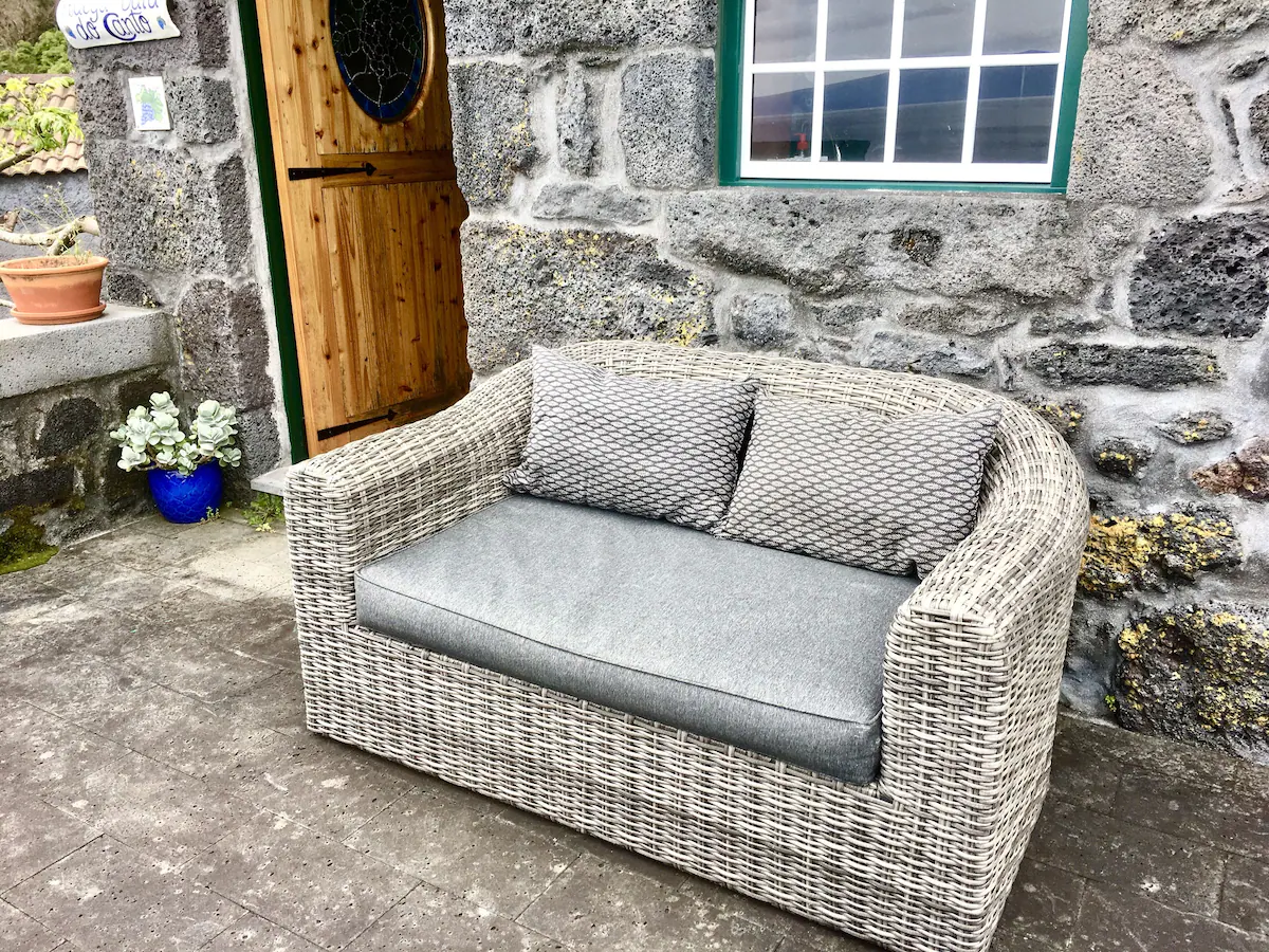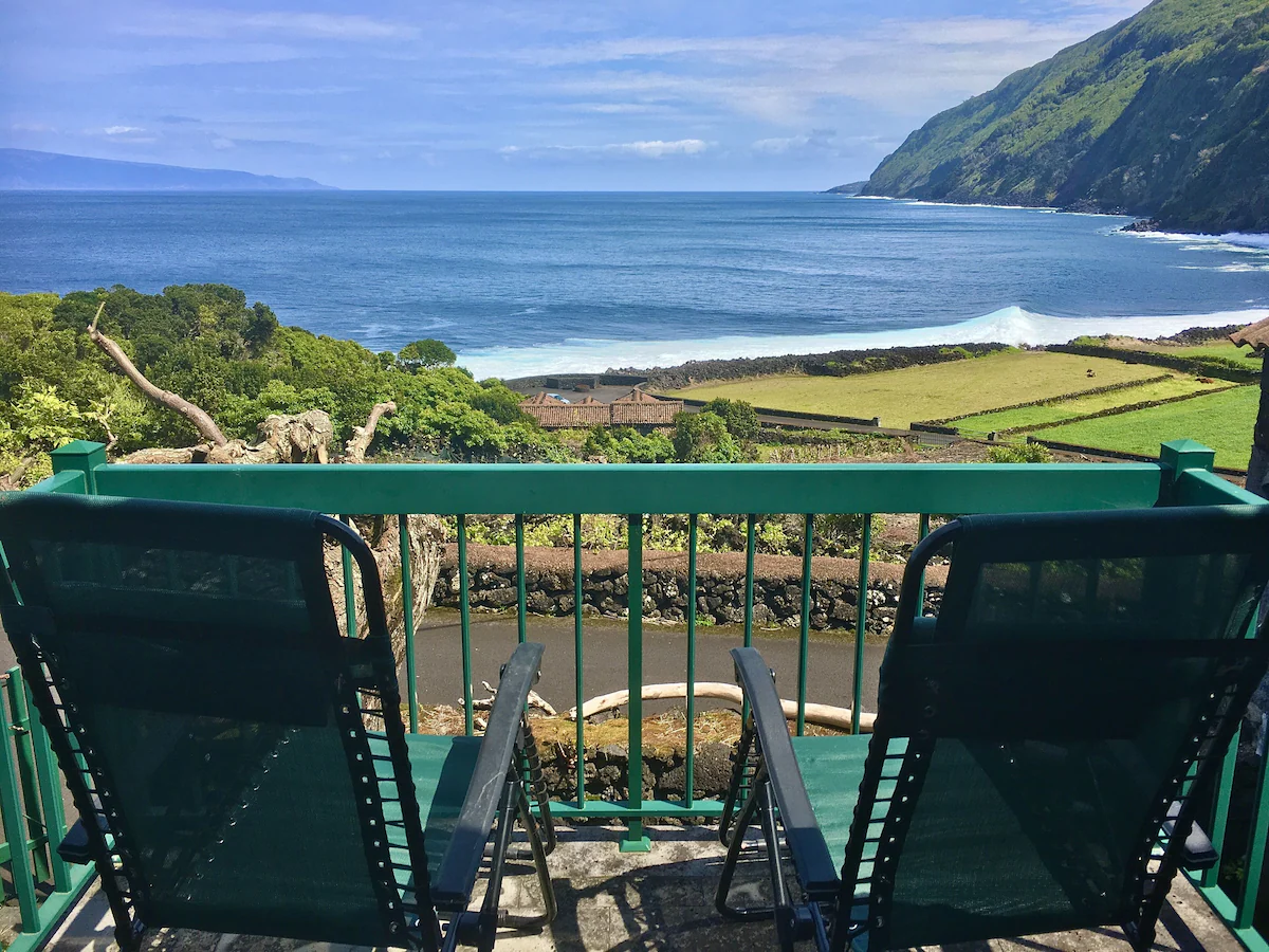 Located in the lovely, peaceful, patrimonial area of Baia do Canto our adega is ideal for relaxing and enjoying the sounds of the ocean, the birds and nature in all her glory! As you look across the channel to the beautiful Sao Jorge you may even see dolphins and the occasional whale spouting. Enjoy your coffee or meal on the balcony or the veranda and watch the local tuna or lobster boats as they go about their age old fishing tradition. You can even buy a fish in the village if you meet the incoming boat and bring it back to grill at the outdoor furno/grilling area in the lower courtyard. Our adega was restored using traditional materials and style and your comfort is assured with the many amenities provided. We are artists and the house has many pieces of our work including the owner/artist\'s use of drift wood and old wine barrels in some of the furniture and furnishings and other touches found through out the adega. There is swimming, diving, fishing, hiking, bakeries and restaurants with some within walking distance if you prefer. We have an organic vegetable garden and fig trees available for your use when in season. If you prefer one bed we will put the twin beds together making a king size for your comfort. There is also a veranda off the bedroom where a cozy and romantic evening meal while listening to the waves reminds you that Pico truly is paradise!