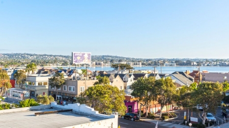 Beautiful penthouse beach condo with panoramic views of the ocean, bay & downtown. Located on the west side of Mission Blvd, it\'s less than 40 steps from the ocean and the beach. Great for couples, girls / guys night out & families!!
