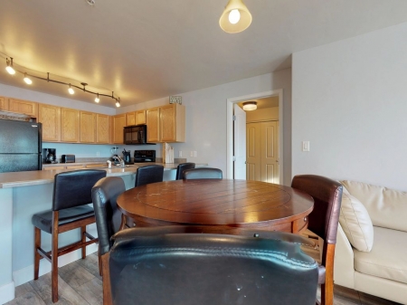 Keep the kids occupied with a selection of toys and games while the parents share wine and appetizers on the balcony, which offers beautiful views of the surrounding Yampa River Valley. Back inside, you\'ll find plenty of space to cook in the full kitchen, which has generous counter and cabinet space, bar seating for four, and a dishwasher to take care of the chores.