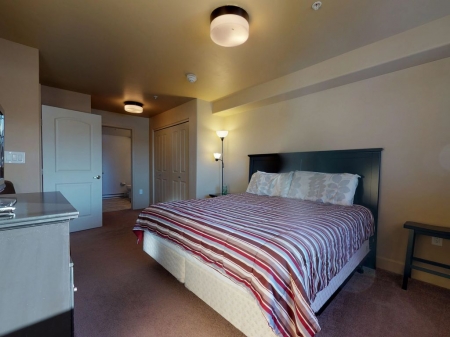 With two bedrooms and two full bathrooms, this home will sleep nine people, with a maximum of seven adults. In the master suite, you\'ll find a king-size bed with a second flatscreen TV and Blu-ray player. The guest room has a set of full-size bunkbeds with an additional twin trundle, as well as a TV and DVD player of its own.