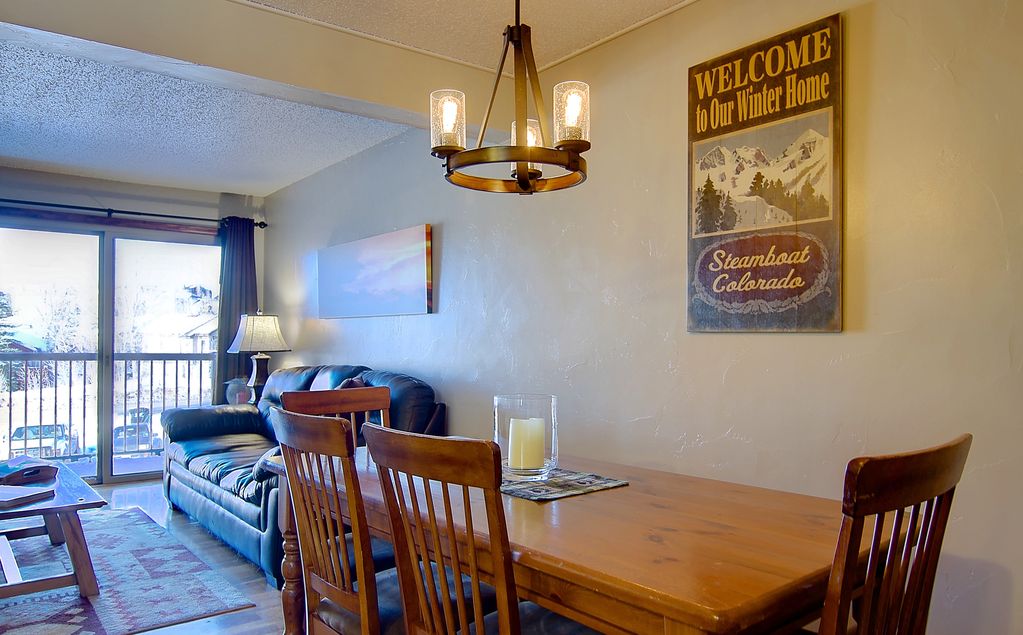 This beautifully appointed 2 bedroom 2 bath condo is nestled at the base of Mt. Werner, less than a mile from the gondola, in beautiful Steamboat Springs.