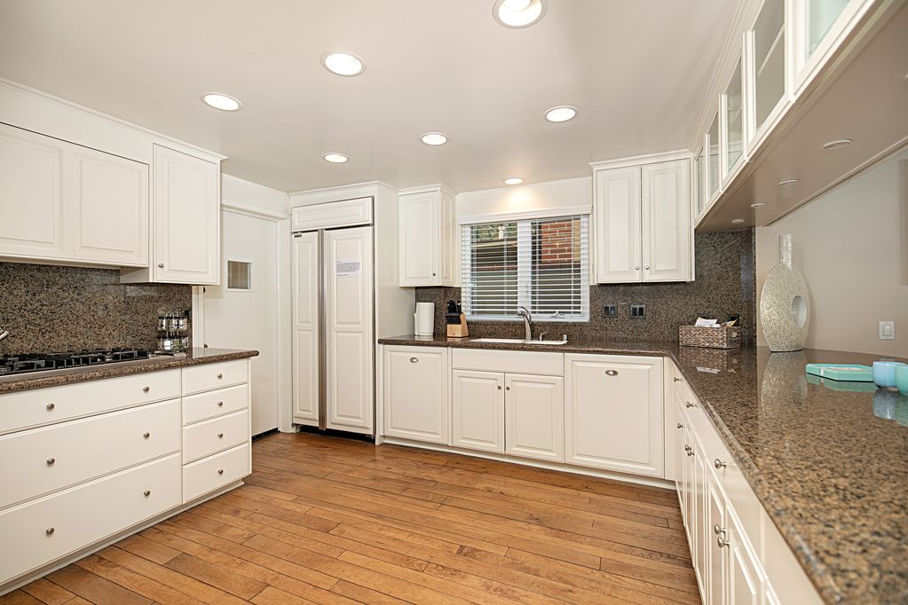 Next to the family room, the open kitchen with bar seating will keep you in the center of it all without missing out on any fun. Outfitted with white cabinetry, granite countertops and stainless-steel appliances this heart of the first floor is an entertainer’s dream. The kitchen has everything you need to make breakfast, lunch and even holiday dinners, and is fully stocked with all of the essentials. The kitchen includes a refrigerator, dishwasher, microwave, gas range, and coffee makers (both traditional and Keurig). Opposite of the kitchen is a bright breakfast nook with bench seating and a buffet for all of your serving needs.