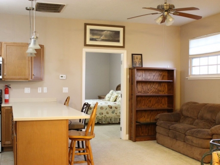 The apartment is separate from the main house, it is on the second floor and has full amenities such as a large kitchen, bath, walk in closet, king size bed, internet, TV, DVD, central A/C. Kayaks are available for your use at no additional charge.