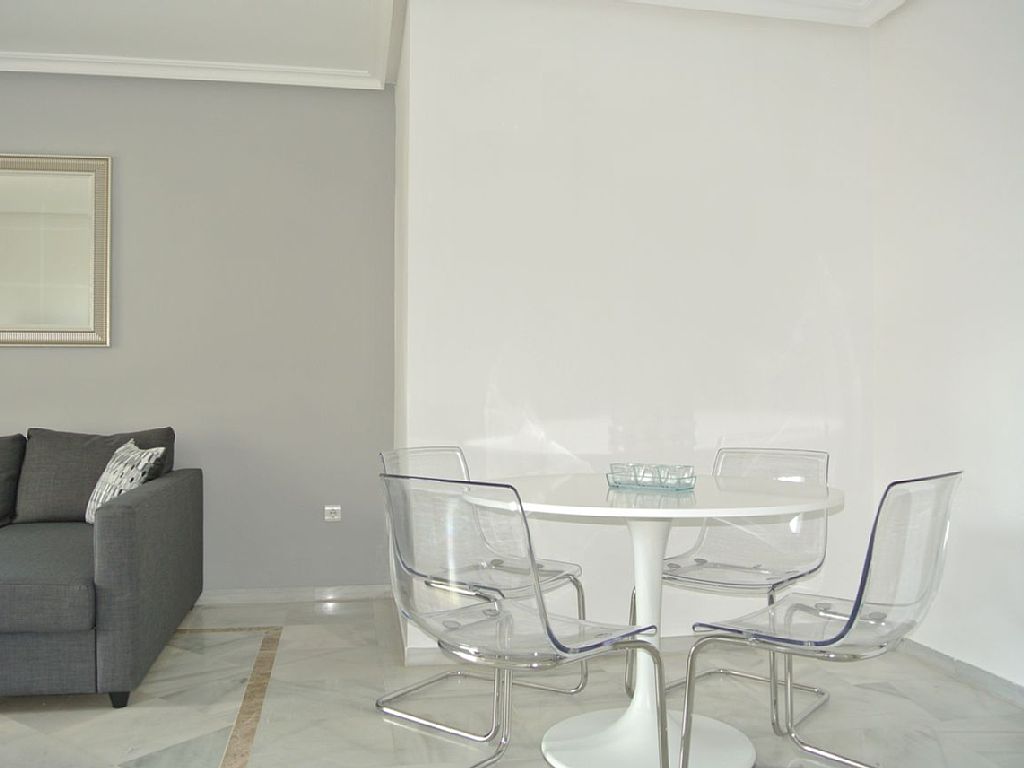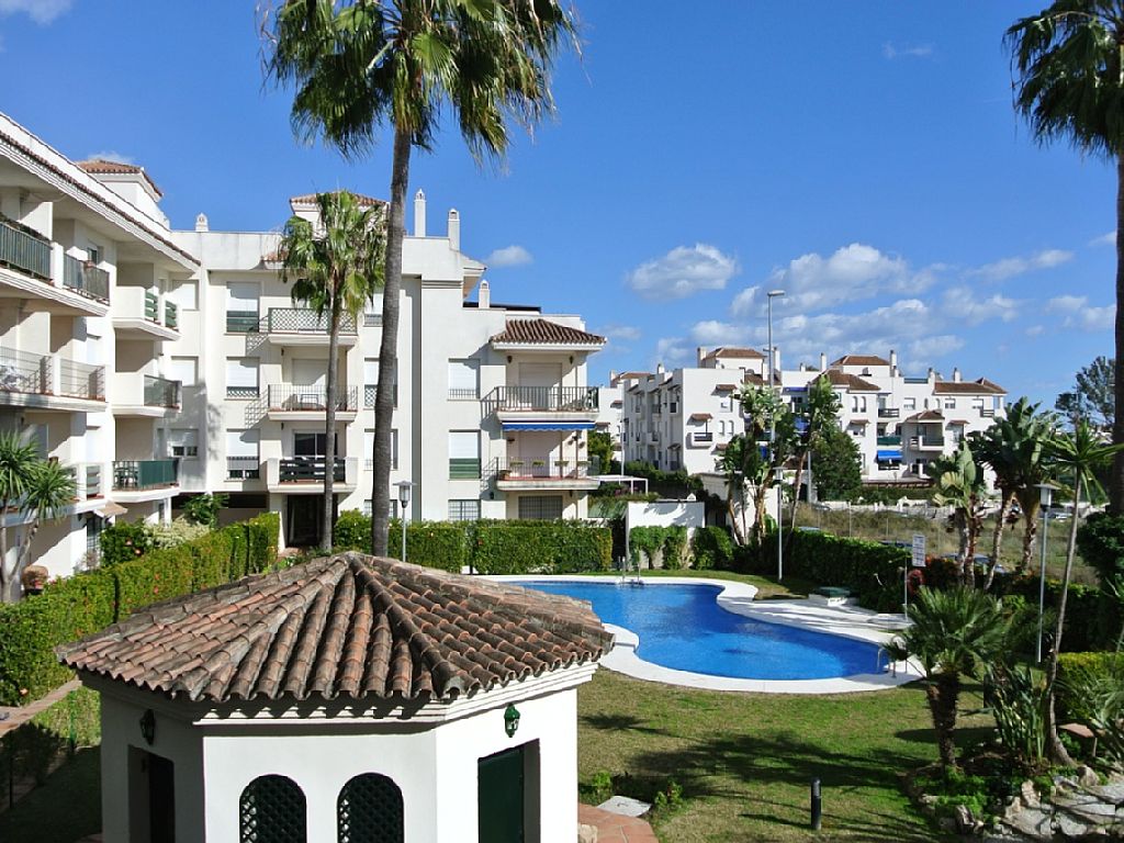 2 bedroom 1 bathroom with terrace overlooking pool Residence Lorcrimar 02 Nueva Andalucia, 1 km from the center of Puerto Ban�s, 400 meters from the sea. For shared use: garden with lawn, swimming pool (01-31 01 12.). Shower / WC in the pool area, parking. Supermarket 400 m, shopping center 1 km, restaurant 100 m, sandy beach 400 m. 3-room apartment RENOVATED 1st floor in a building of 3 floors Modern, comfortable and nice furnishings: living / dining room with LED TV. 2 bedrooms with 1 double bed in each. Kitchen (oven, ceramic hob, microwave, freezer, dishwasher and washing machine). Bath / bidet / WC. Air-conditioning, warm air heating. Terrace. Patio Furniture. Parking available