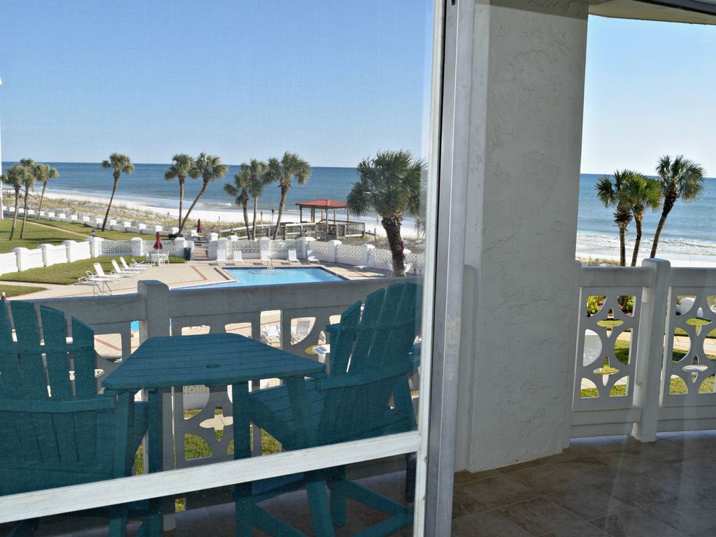 Newly updated! From the moment you step inside the door and onto the beachy driftwood flooring, viewing the interior of this lovely updated condo, you realize you have made a wise choice for your vacation residence. The kitchen is fully equipped including updated cabinetry and quartz counter tops. Comfort is the main amenity of the bright and airy living area, with a new sofa bed and loveseat, Wi-Fi, a flat screen TV along with DVD player, and a selection of books to enjoy. Ah, but a fantastic view, visible from the living room and bedroom, also awaits you on the balcony. Relax with a cool drink in the new elevated Adirondack chairs which allow a beautiful view of the gulf and pool area. The carpeted bedroom, with lots of closet and drawer space, features a comfortable king- sized bed for a good night’s sleep. The bathroom features an additional closet and has newly installed cabinetry, sink and quartz countertop. Awaken to a beautiful view of the beach and get ready to have a wonderful relaxing day in your own Gulf Dream.