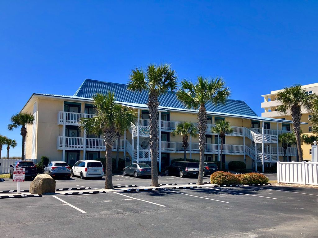Located on Okaloosa Island, this third level unit is on the top floor of a quiet complex that sits directly on the beautiful white sandy beaches of the Gulf of Mexico. As a smaller condominium complex with 27 units, the beach is much less crowded and we have our own private boardwalk. This beautiful beach is our backyard! The unobstructed view of the sparkling emerald waters and the beach from our living room and balcony is spectacular! The brilliant colors of the sunrise and sunsets are captivating. The moonlit nights also display their own glistening beauty across the waters. The spacious living room with two sliding glass doors that open to the balcony overlooking the beach includes a nice comfortable queen size sleeper sofa. The kitchen is fully equipped with many extras for those choosing to eat in, and the dining area seats four. There is a washer/dryer in the unit for your convenience. The bedroom has a very comfortable king size bed and a private half bath. The full bath is beautifully updated and located off of the hall. We have nice linens and towels, and our housekeeping service will have our non smoking condo clean and prepared especially for you! There is a reserved parking place for our guest, as well as self check in/keyless entry for your convenience. Our outdoor pool is equipped with bathrooms, lounge chairs, a grilling area, and picnic tables, located in front of our condo. The back of our condo faces the beach, and from the balcony is the gorgeous beach view. The beach service we provide for our guest includes 2 chairs and 1 umbrella, set up daily from Mar 1 through Oct 31. We have two beach chairs in the bedroom closet for our guest as well. Kayak/paddle board rentals are also available during this time. Please remember to bring your own beach towels!