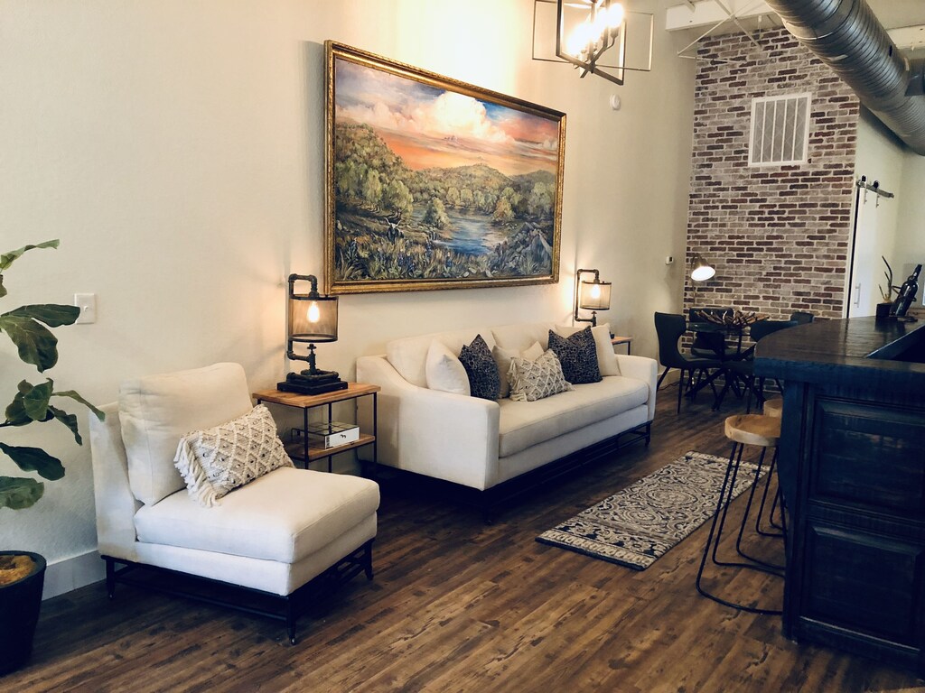 Eagles Landing Lodge is located in the heart of The Village of Old Town Bulverde surrounded by restaurants and shops. The building is the former Comal County Courthouse which has been completely renovated into a very unique lodge. The lodge style is rustic yet elegant, with a modern flair. It has a large suite with king size bed, a small room with built-in, twin size bunk beds and in a separate area that closes off privately it has a pull down queen size Murphy bed. It has a grand open space with two living area and two dinning area. The full kitchen has a long bar with bar stools. Kitchen is fully stocked with dishes, silverware, pots and pans, 2 coffee makers and serving dishes for small events.We have covered porches with relaxing views of the hill country and the village. A perfect place where couples or families can come to enjoy this quaint little area which has many things to do within walking distance or just a few minute short drive away from beautiful San Antonio, TX.