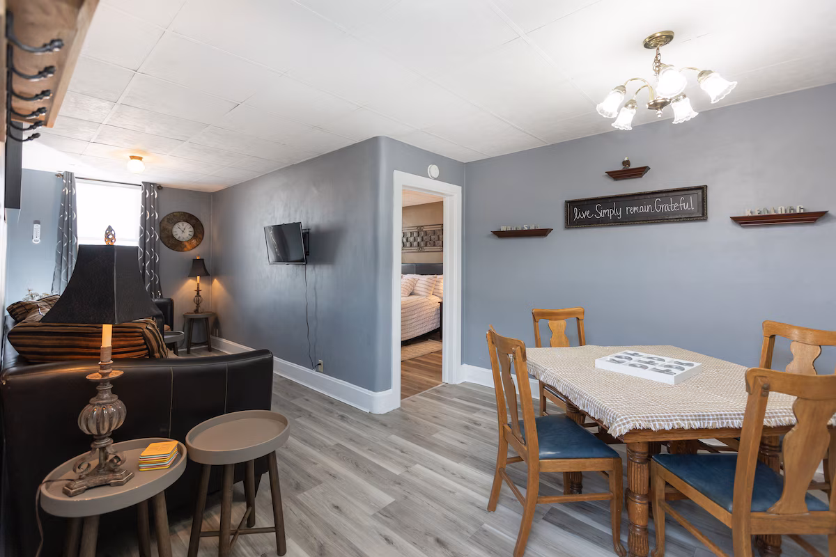 Onsite parking and street parking. Steps away from restaurants, Mississippi River, National Eagle Center, bowling, bars, library, pottery and art gallery and shops. Walk down the steps, turn right and you will immediately see and be able to walk to the National Eagle Center & take ealks along the Mississippi River. Take in eagle viewing & all the wonderful nature we are lucky to have.