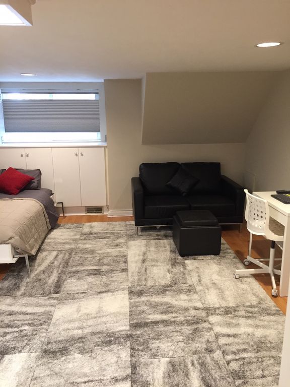 This spacious studio has a large window at street level so the suite is bright and faces a park in the heart of downtown Toronto less than a 5 minute walk from Wellesley subway. Coffee shops, restaurants and all forms of entertainment and shopping is closeby. The suite is suitable for 1 or 2 people.