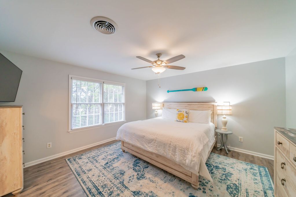 The second floor also offers the Master King Suite with private bathroom, a Large Guestroom with two Queen Beds and Full Bath in Hallway.