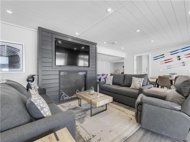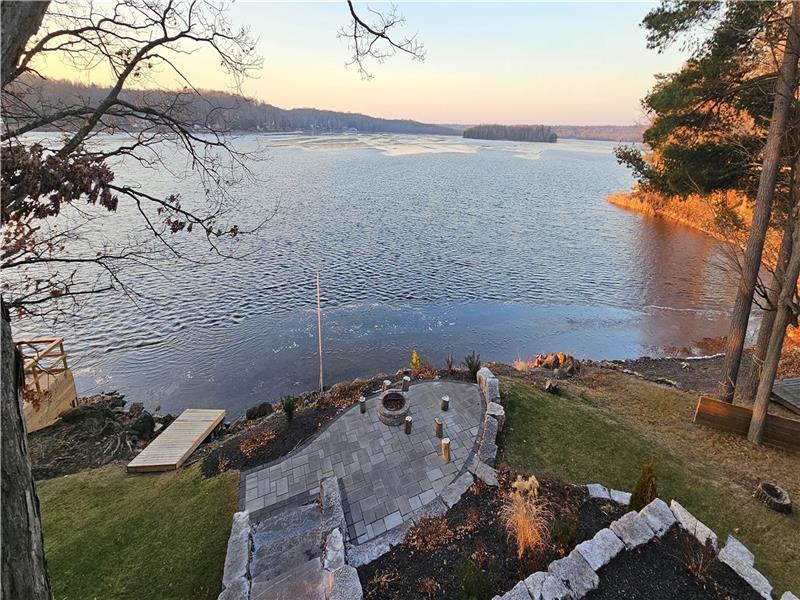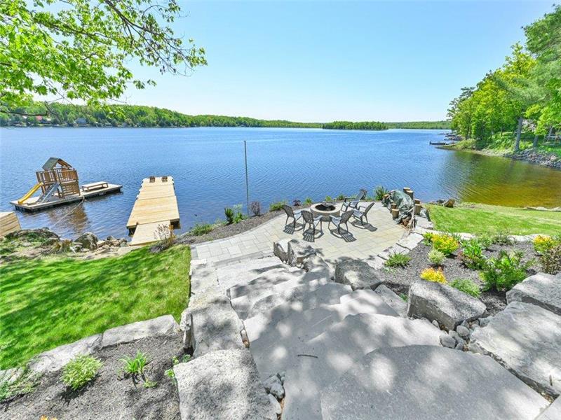 The waterfront has some beach / sandy areas mixed with rocky shoreline and has a gorgeous lakefront firepit for all guests to relax and enjoy.