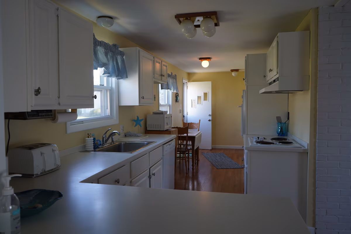 We came up for a week to visit family. It was a spacious house, a literal stones throw from the beach, and the neighborhood was quiet. The beach is clean and fairly shallow out to a sandbar. Perfect for our 4 year old.