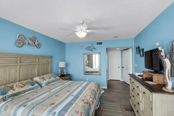 e stayed in 1103 and had the best time that we have ever had on the beach. The King size bedroom was spacious and comfortable, the shower was a tremendous plus and the soak tub came in handy with my wife\'s back. The views from the 11th floor were perfect, not so high that you couldn\'t see the marine life but high enough to take out any crowd noise. The nightly sunsets were the best that I have seen in a long time (trust me I only have a couple of hundred shots). The facilities were very well maintained and the pools and hot tubs were close. The kitchen was very well stocked and if we could have gotten the double recliner in our Rav4 we might have taken it home. Dale was very easy to deal with and quick to respond to any questions. If we get a chance to come back to the beach this is the place that we will come back to if at all possible.