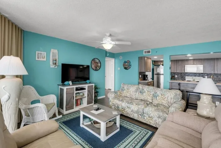 This was our first stay at Long Beach 1103 and it did not disappoint. Dale and Darla have thought of everything to make sure our stay wonderful. Bedrooms are spacious and beds comfy. Both bathrooms are large and walk in shower was so big and did I mention the garden tub! Plenty of living room seating for movie night! Every room had floor to ceiling windows, lay in bed and look out at the waves. Balcony was large with heavy duty table and chairs and chaise lounge, enjoyed watching the dolphins and stingrays from the balcony. Kitchen fully stocked with everything you need to stay in and cook to save $. I’ve stayed at other condos and the pots and pans were so worn out, Dale and Darla has made sure all cooking pans, plates, glasses, coffee cups etc are high end. The decor is beach themed and so bright and inviting. After renting do many different condos, we have found our return rental. You will not be disappointed renting from Dale and Darla.