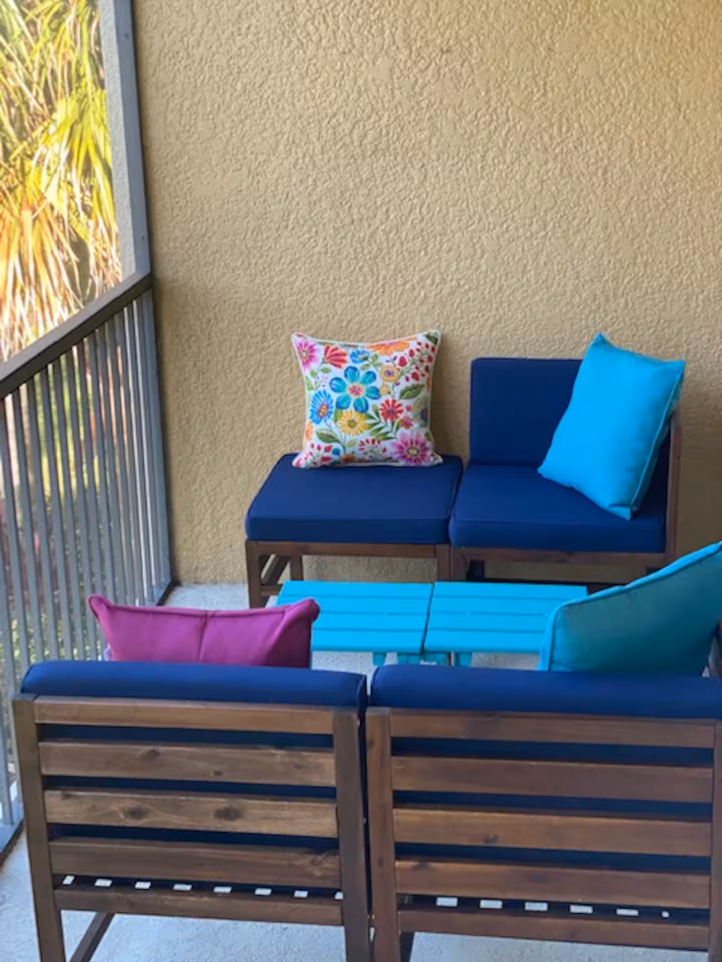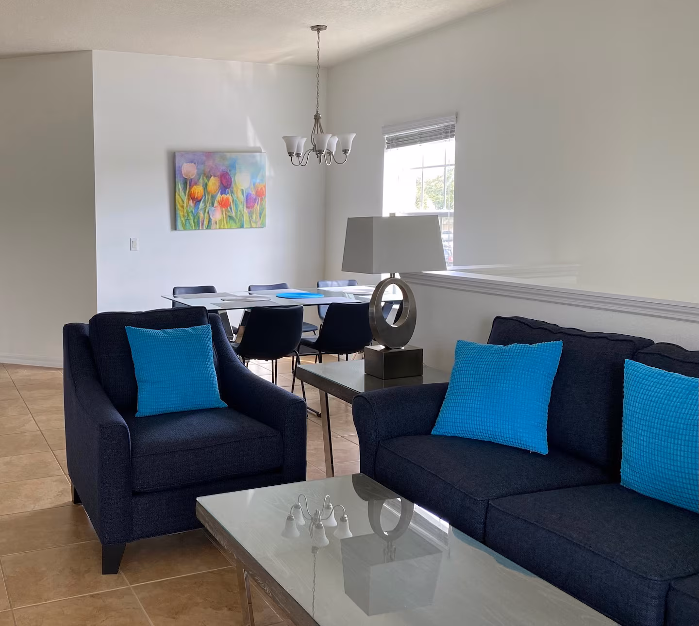 We highly recommend the place! A spacious living room with beautiful furnishings, an easy-to-use kitchen, and a bedroom that feels like you\'re in a theme park! In the morning, it\'s great to sit on the veranda and watch the pool across the street for a freshly brewed coffee. It was also very convenient to be within walking distance of Walmart and souvenir shops. Access to theme parks like WDW and Universal Studios is also good! Staying here will make your stay in Florida even better.