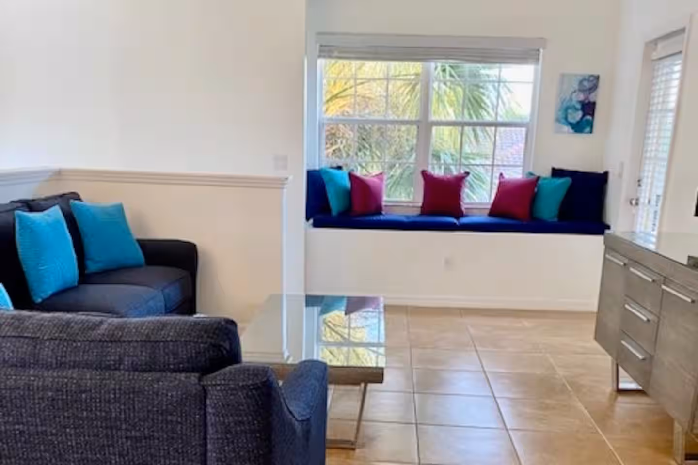 This second-floor townhouse is just steps from the Oakwater Clubhouse, year-round heated pool and hot tub! Super convenient! We have outfitted the 1400+ sq ft property with all NEW furniture, hotel quality linens, 4 smart tvs, smart lock, and a new AC. All beds have high quality mattresses! (No futons and pullout couches!) We also installed designer, commercial grade, flooring in all 3 bedrooms. All other floors are tiled. (No carpet!) The unit has a personal router with high-speed internet for the exclusive use of our guests.
