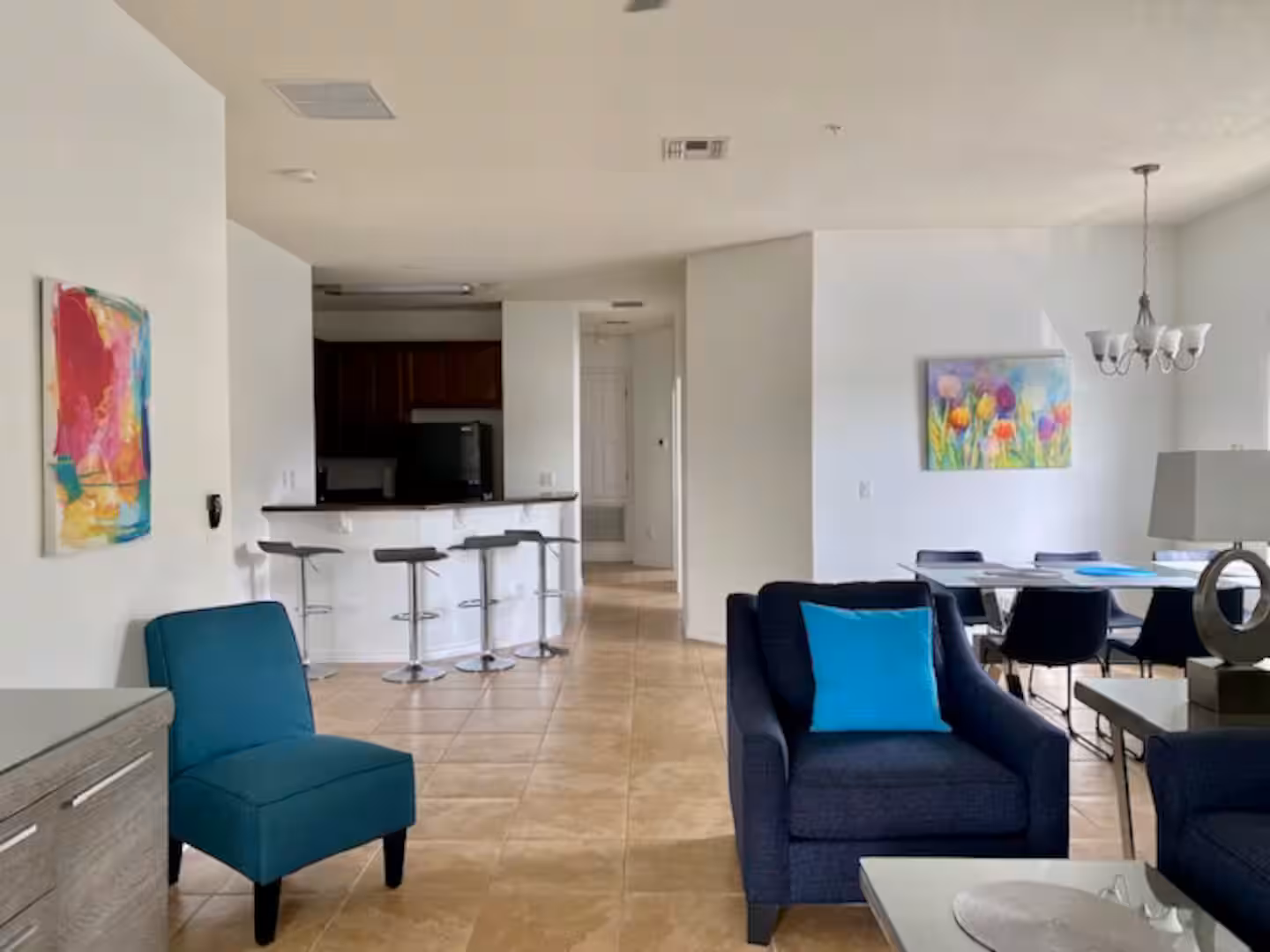 Rhonda’ s place was AMAZING!! It was the perfect size and layout for my family. It was great having our own rooms, two bathrooms, and a balcony off of the master bedroom. The location was perfect for getting to the Orlando parks and for spending a day at the pool/hot tub/ pickleball. I truly felt like I could relax in Rhonda’s place. The life machine was a great touch as well!! We would love to stay again if her place is available!!