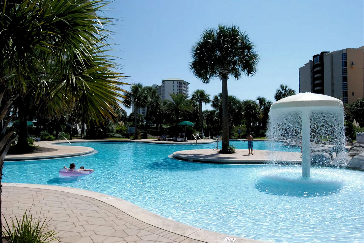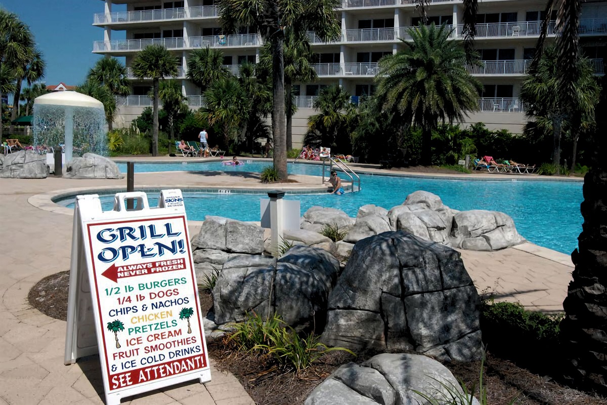 Located in the heart of Destin. The 4300 square foot Lagoon-style pool fronts your dedicated beach and features a mushroom fountain the kids love. There is a BBQ alongside if you are in the mood to grill; if not, the second pool features a convenient grill, serving delicious hot dogs, hamburgers, ice cream, and beverages. Or skip the pools, grab a soda, and hit the beach.